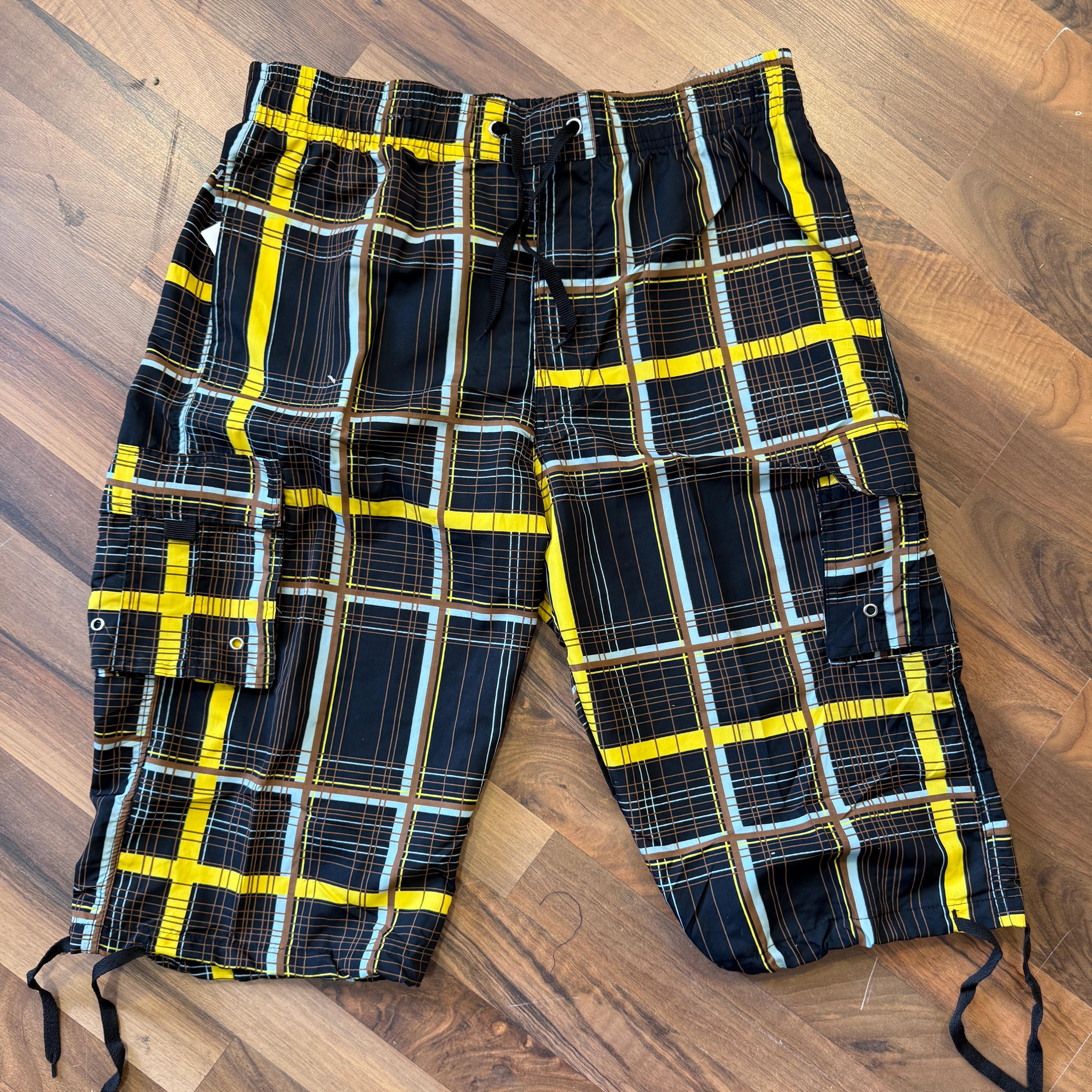 Bermudas Herren Basic Capri-Hose mit Tasche und Eingriff-Taschen, Seiten-Tasche, Hosentasche, Bein-tasche Multi-Tasche. Aus 100% Polyester , atmungsaktiv. Elasthan Elastik-Bund.