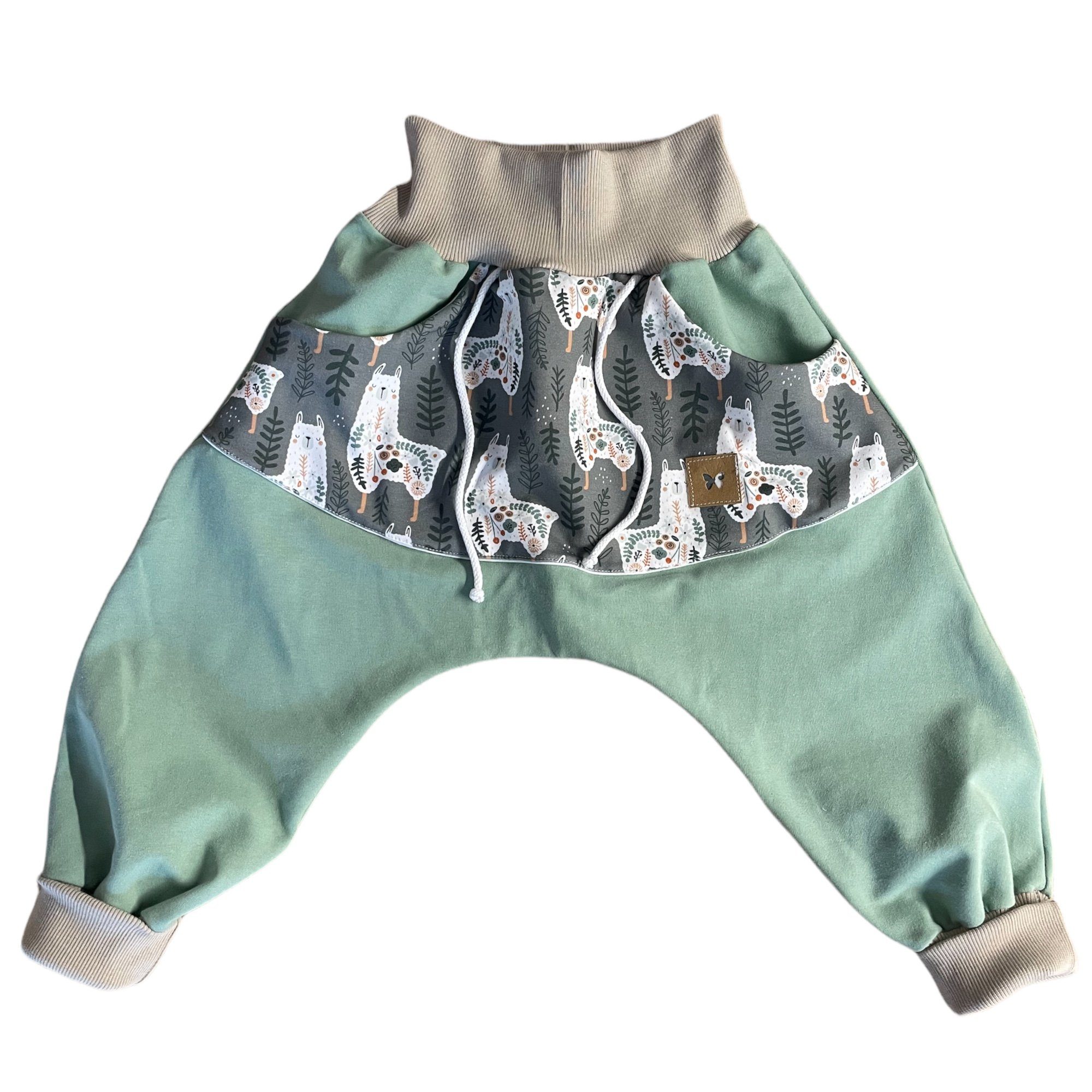 Zuckersüße, bequeme buggy pant mit Euklyptus-Lama Motiv für kleine Mädchen & Jungen