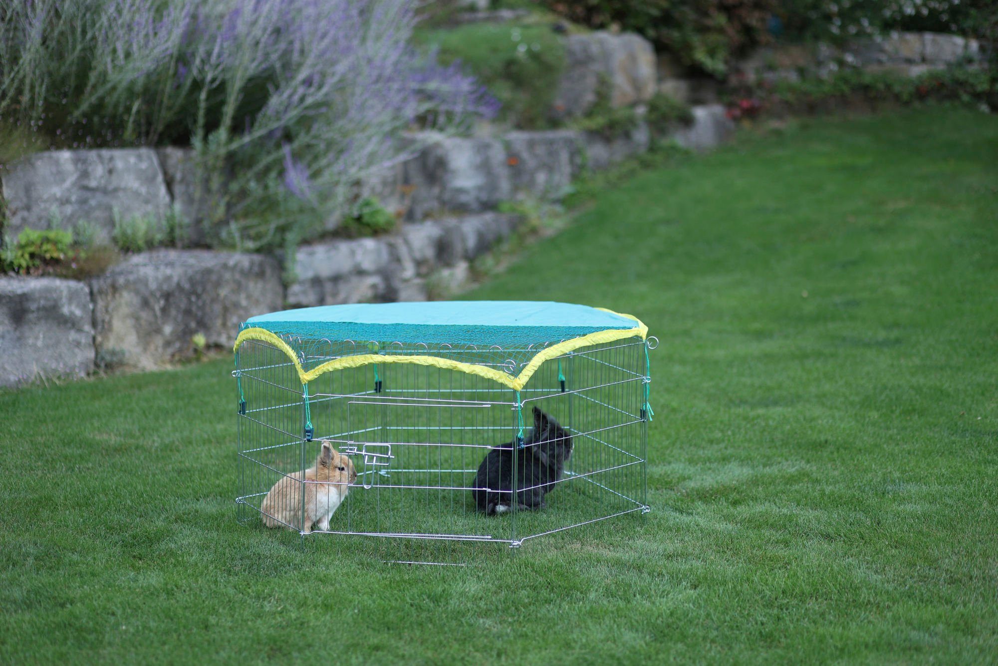 Das 6-eckige Freigehege bietet Ihren Kleintieren unbescherte Sommerfrische im Garten. Das Netz- / Sonnenschutz bewahrt Ihre Kleinen vor ungebeteten Gästen wie Katzen, Marder oder Greifvögel. Außerdem spendet es an heißen Tagen genügend Schatten. Die 6 Zaunelemente sind einfach und variabel aufstellbar und im Winter platzsparend aufzubewahren. • ein Element mit Türe • verzinkte Ausführung • Розмір pro Element: 56,5 x 56,5 cm • einfache Montage mit Erdspießen