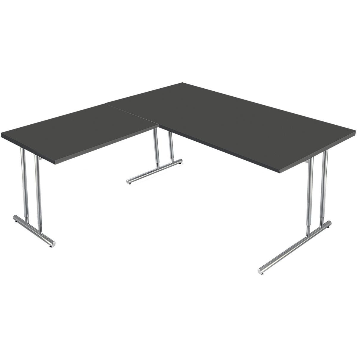 Winkel-Schreibtisch »Artline Transparent« 160 cm 90° Winkel höhenverstellbar, Ausführung: sehr lang, 90°-Winkel, C-Fuß Gestell, melaminharzbeschichtet, Tischplattenstärke: 25 mm, ABS-Kanten, Elektrifizierung über Kabelkanal möglich, Material Gestell: Metall, manuell höhenverstellbar von 68 bis 82 cm