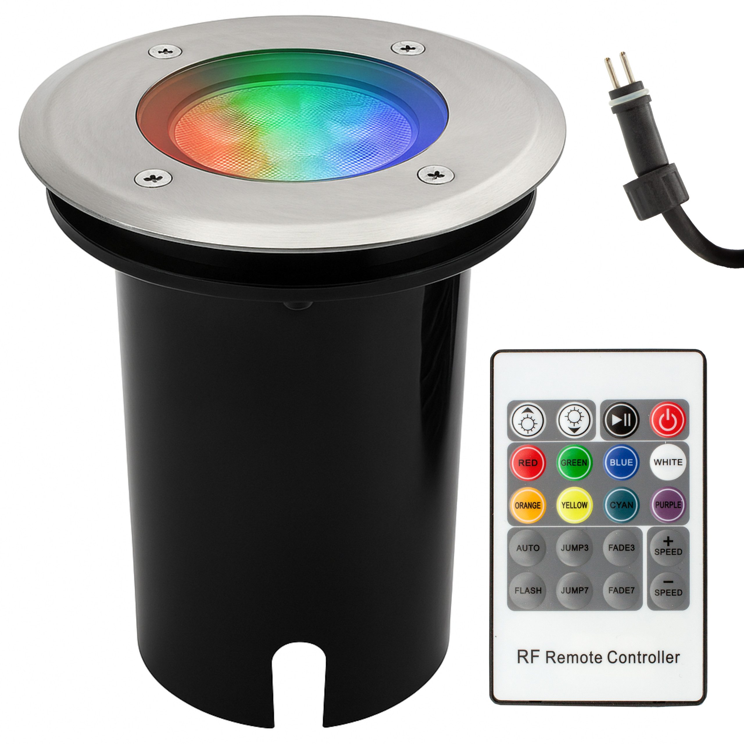 Und das Beste kommt noch: Unser erweiterbares Set ermöglicht es Ihnen, weitere Kerry RGB Lampen ganz einfach an die Fernbedienung anzuschließen und Ihre Gartengestaltung nach Lust und Laune zu erweitern. Entdecken Sie die grenzenlosen Möglichkeiten und setzen Sie stilvolle Akzente im Außenbereich - mit der Runden LED-Bodenleuchte aus der Kerry Electronics Design Line!