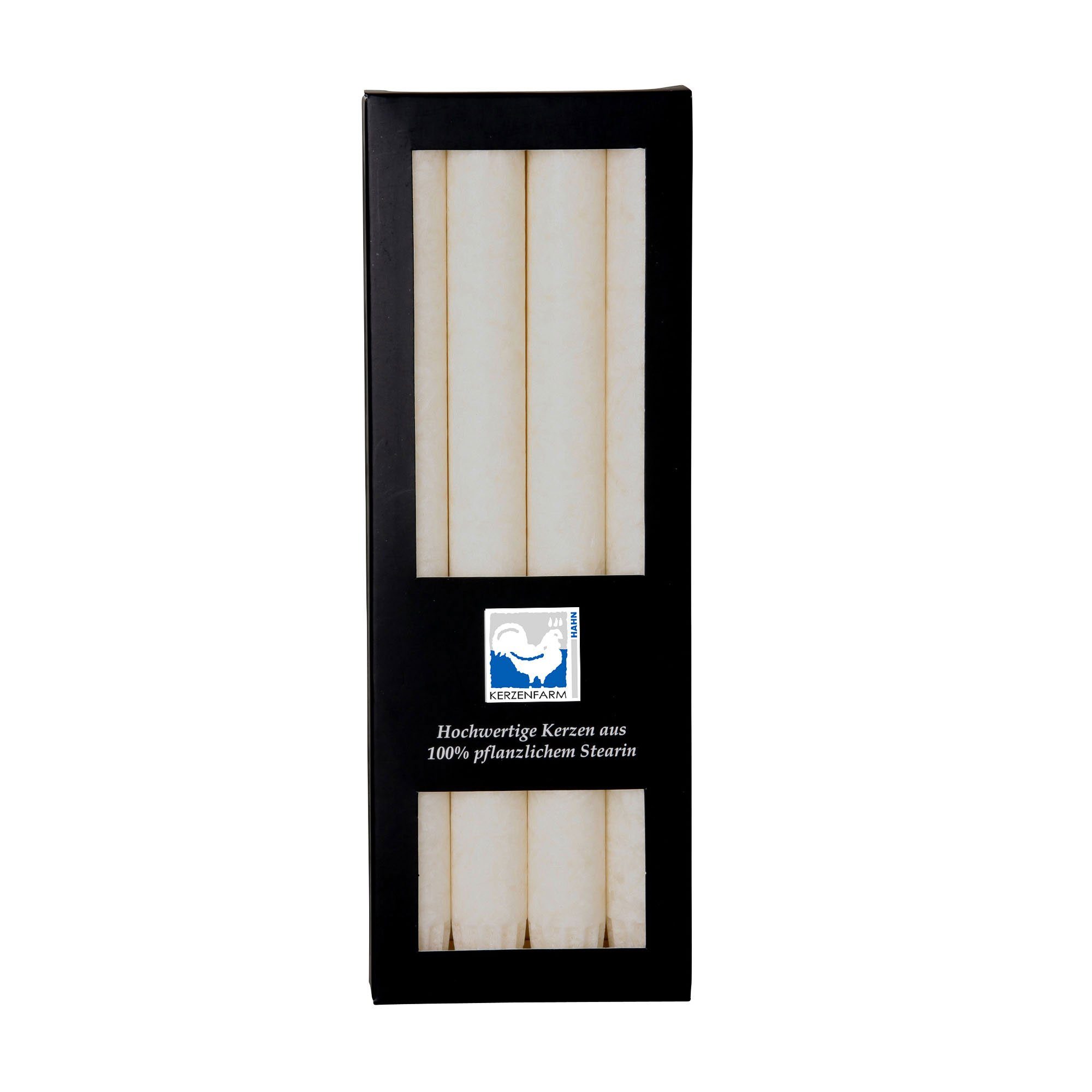 Die Kerzenfarm Hahn ist ein Hersteller hochwertige Stearinkerzen bzw Leuchterkerzen aus 100% pflanzlichem Stearin in den verschiedensten Farben. Stearinkerzen sind aus 100% pflanzlichem Stearin, einem nachwachsenden Rohstoff, hergestellt (nach RSPO). Diese Stabkerzen sind durchgefärbt, haben eine marmorierte Oberfläche, die das Aussehen sehr edel erscheinen lässt, sowie einen Kronenfuß, die das Einpassen in fast jeden Kerzenhalter ermöglichen. Das Brennverhalten dieser Stearinkerzen ist sehr gut, da sie nahezu tropf - und rußfrei abbrennen.