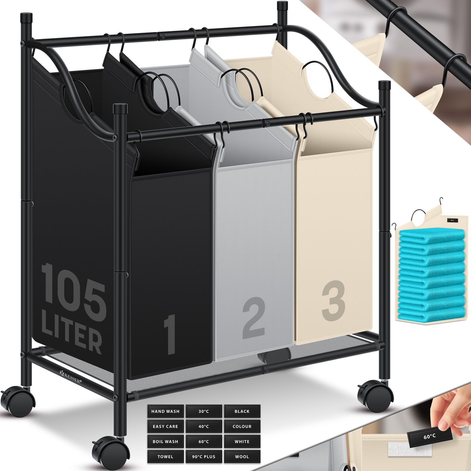 KESSER Wäschekorb Fächer mit einem XXL-Fassungsvermögen von bis zu 10 kg pro Fach, 12 Klett-Organizern, separaten Wäschesäcken, robusten Materialien, 360°-Rädern mit Bremse, intelligentem Design, praktischen Klett-Organizern, entnehmbaren Wäschefächern und vielseitiger Verwendbarkeit im Kinderzimmer, alles unterstützt durch robustes 600D-Oxford-Gewebe
