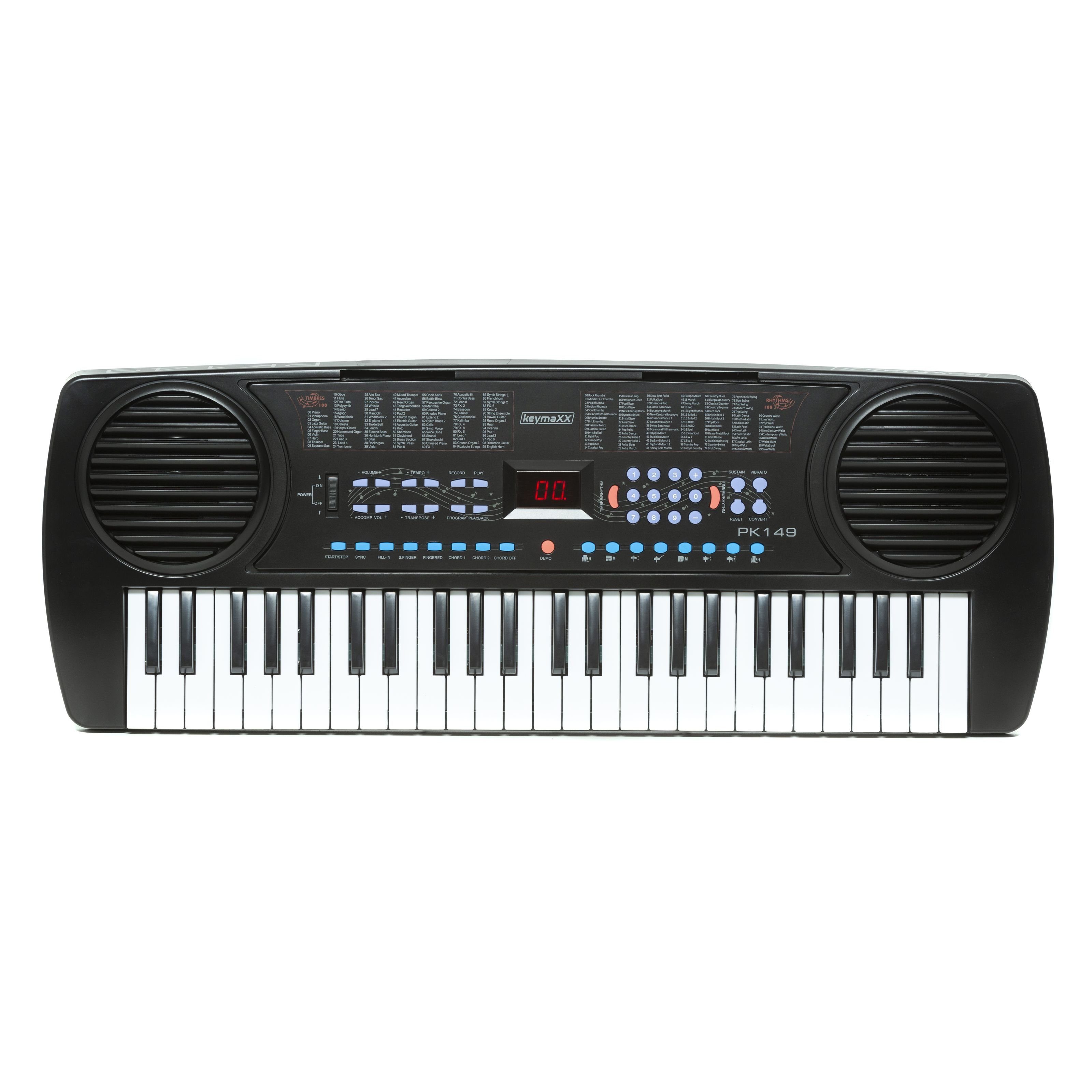 Lieferumfang | Vielseitiges Home Keyboard für Einsteiger: 49 MidSize-Tasten, 100 Sounds, 100 Rhythmen und 8 Demo Songs bieten eine hervorragende Grundlage für musikalische Kreativität. Einfach zu bedienen und ideal für Anfänger: Das keymaXX PK149 ermöglicht einen leichten Einstieg ins Tastenspiel und bietet eine Begleitautomatik mit Chord-Funktion für ein einfaches Erlernen des beidhändigen Spiels. Spaß beim Singen und Musizieren: Mit dem mitgelieferten Mikrofon können Lieblingsmelodien mit Gesangseinlagen begleitet werden, um den musikalischen Ausdruck zu fördern. Kompaktes und tragbares Design: Das PK149 ist leicht und handlich, ideal zum Mitnehmen und Musizieren unterwegs. Hochwertige Funktionen und Zubehör im Lieferumfang enthalten: Das Keyboard verfügt über Stereo Lautsprecher, Line-Ausgang für den Anschluss an externe Geräte und kommt mit Netzteil, Notenhalter und Mikrofon. MS-ID: KEY0005408-000 Hersteller: keyMaxx Bauform / Tastenanzahl: 49 Tastaturausführung: nicht gewichtet Anschlagdynamik: Nein Tonerzeugung: Digital Display: Ja Aufnahmemöglichkeit: MIDI-Linearsequenzer Lautsprecher: Ja LINE OUT: Ja Mikrofoneingang: Ja inkl. Netzteil: Ja Gewicht (kg): 2.23 Gewicht Range (kg): 0 - 2,5 Batterien enthalten: Nein Anzahl Sounds: 100 Anzahl Styles: 100 Polyphonie: 8 Stromversorgung: Netzteil, Batterie Breite (cm): 76 Höhe (cm): 8.5 Tiefe (cm): 27 Verstärkerleistung Watt: 2 x 3 |
