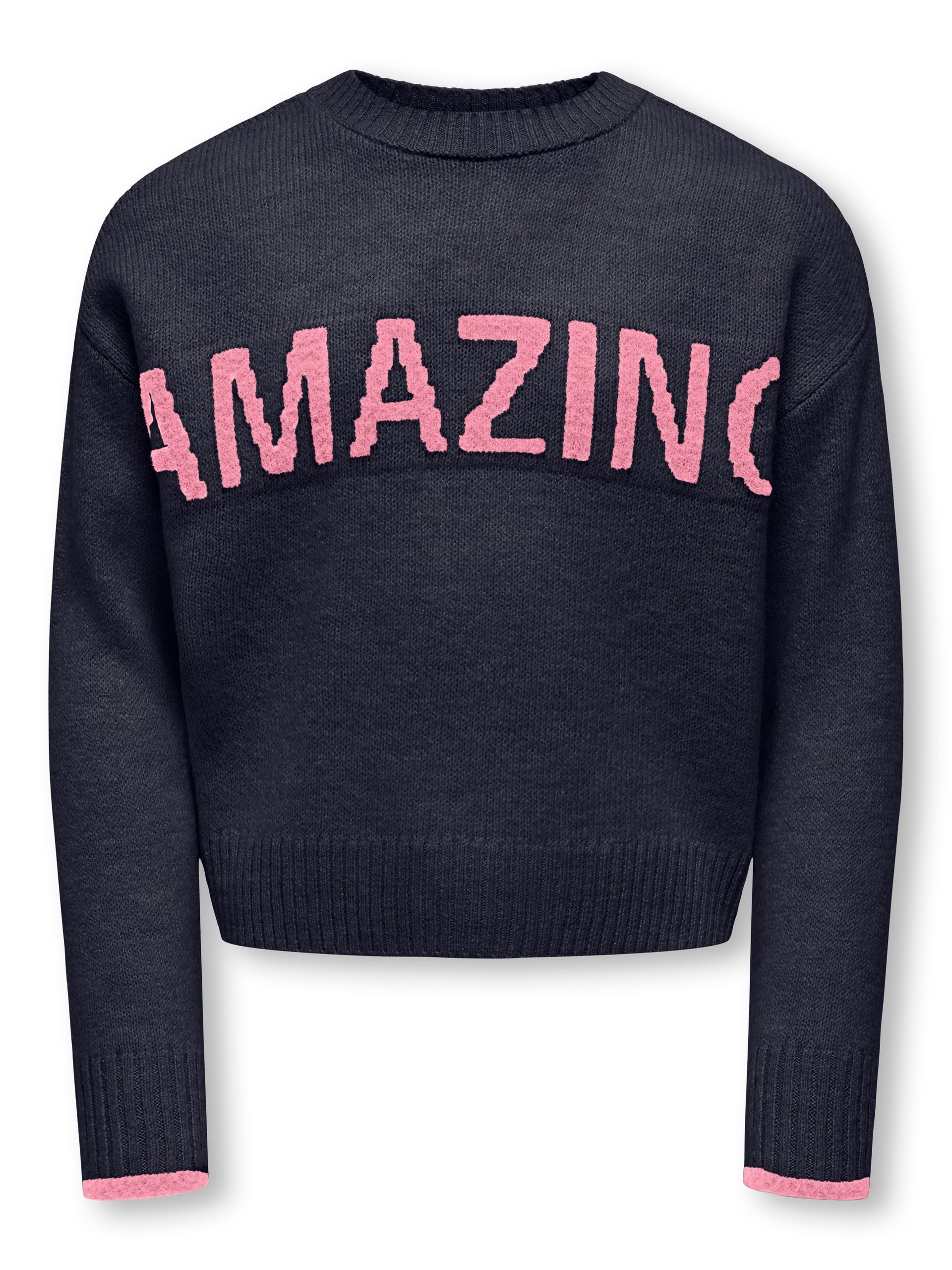 Der Strickpullover von Kids Only kombiniert ein selbstbewusstes Statement mit kuscheligem Tragekomfort. Mit seinem auffälligen Schriftzug und bequemen Schnitt wird er zum Lieblingsstück für Schule, Freizeit und Alltag – ein echtes Mode-Highlight für junge Trendsetterinnen.
