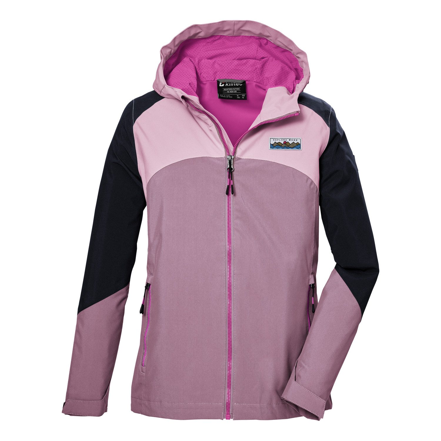 Die killtec Kinder Funktionsjacke mit längenregulierbarer Kapuze und in Colourblock Optik macht jedes Outdoor-Abenteuer mit. Das Material ist winddicht und dank verschweißter Nähte sowie einer 10.000 mm Wassersäule wasserdicht (Unser Tipp: ab und zu sollte die Jacke neu imprägniert werden). Die Outdoorjacke ist mit verstellbaren Ärmelbündchen, seitlichen Zippertaschen und modisch reflektierenden Elementen ausgestattet. Das Innenfutter aus leichtem Mesh-Mix verspricht ein angenehmes Tragegefühl. Der Saum ist durch einen Kordelzug verstellbar. killtec liegt es besonders am Herzen, die Kollektionen nachhaltiger und zukunftsfähiger zu machen. So setzt killtec verstärkt auf verantwortungsbewusstere Herstellungsverfahren. Diese Jacke wurde daher PFAS-frei imprägniert.