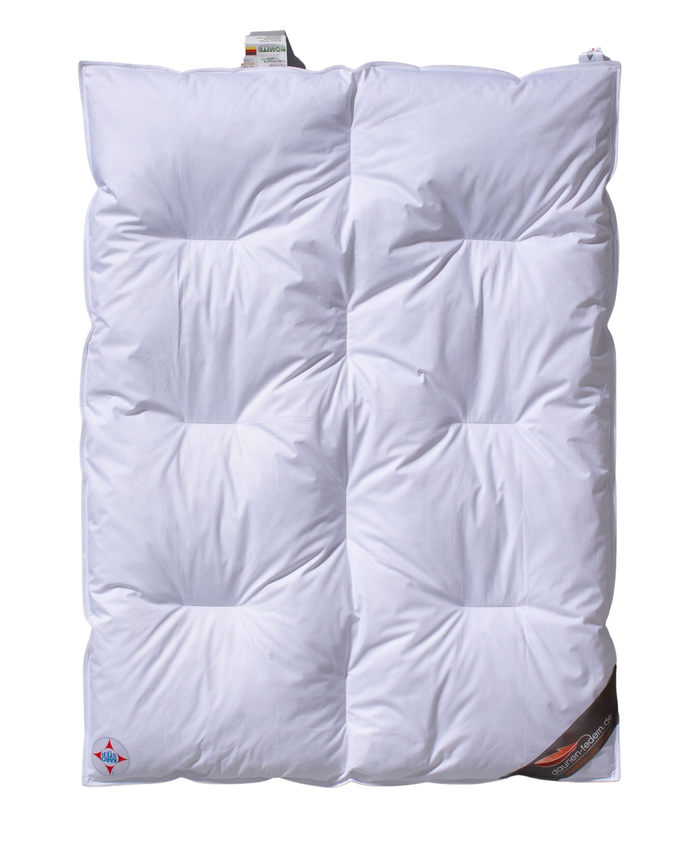 Materialzusammensetzung | Bezug: 100 % Baumwolle / Füllung: weiße deutsche neue Gänsedaunen und -federchen Klasse I / 15% Daunen - 85% Federchen |
