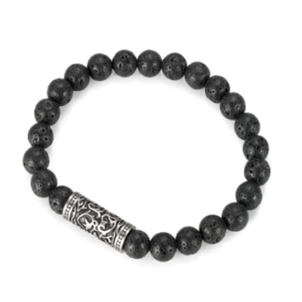 Armband aus Lavastein Ø 8 mm Edelstahl 316 silberfarben mattiert/geschwärzt/strukturiert Kautschukband Довжина ca. 21 cm