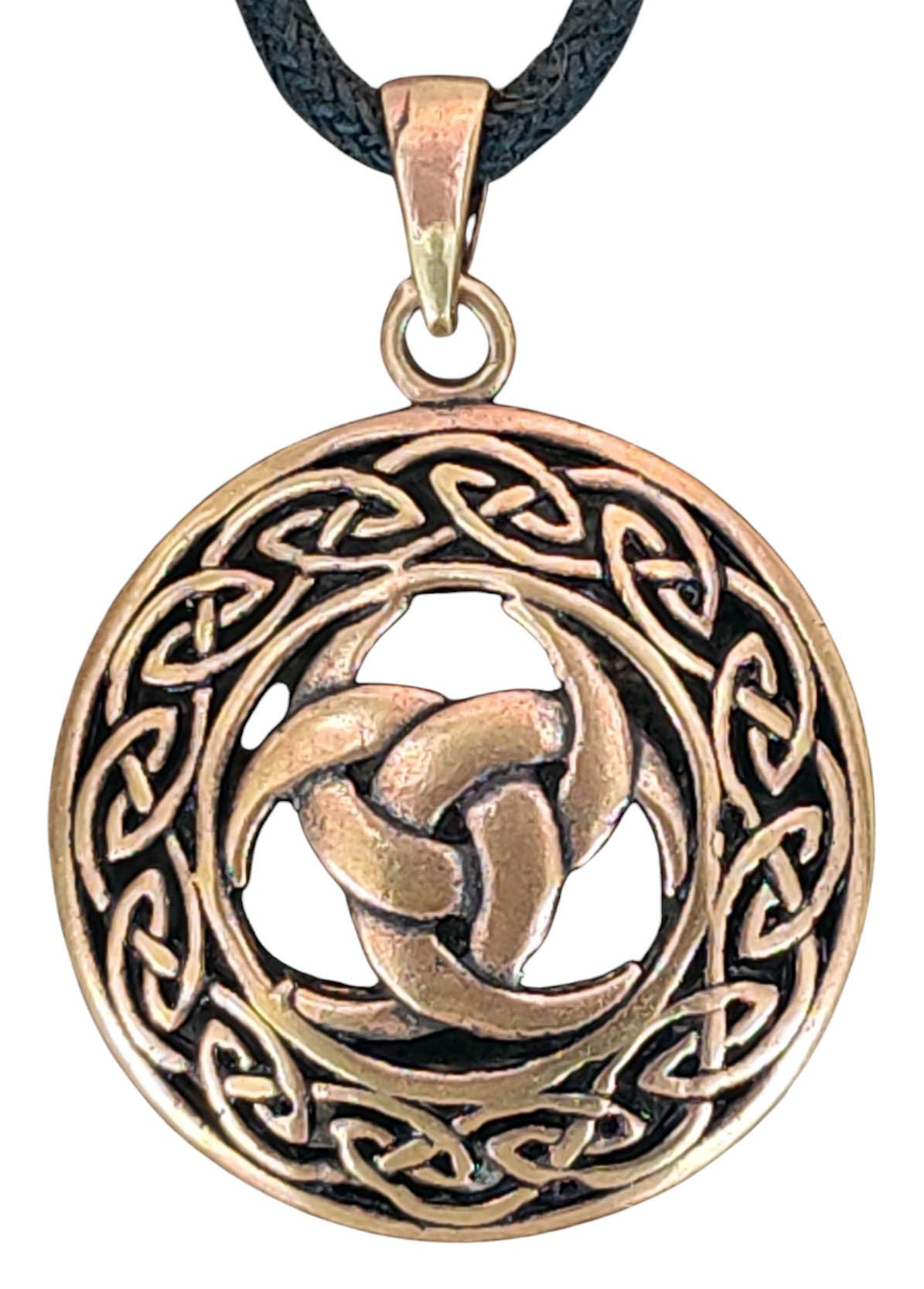 Kunstvoll gestaltetes Horn Odins aus Bronze. Der Kettenanhänger ist teilweise geschwärzt. Das Hauptmotiv ist von einem Ring aus Keltenknoten umgeben.