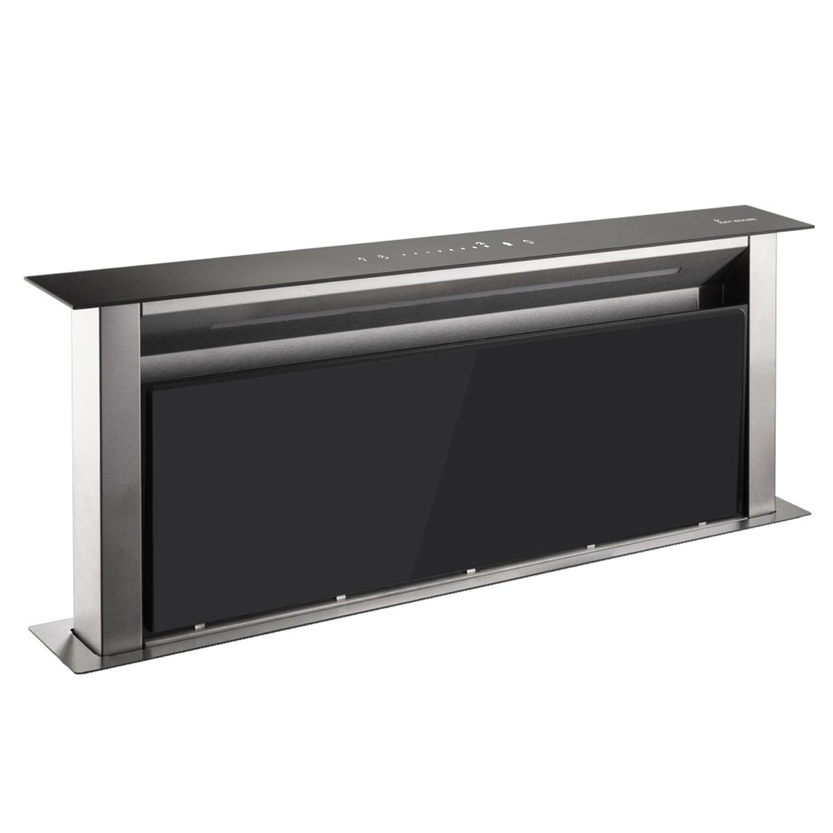 Top-Features | Down-Draft Dunstabzugshaube / Tischabzug / 90cm / Edelstahl / Schwarzes Glas / Extra-leise / LED-Beleuchtung / 9 Stufen / TouchSelect Sensortasten / Nachlaufautomatik |