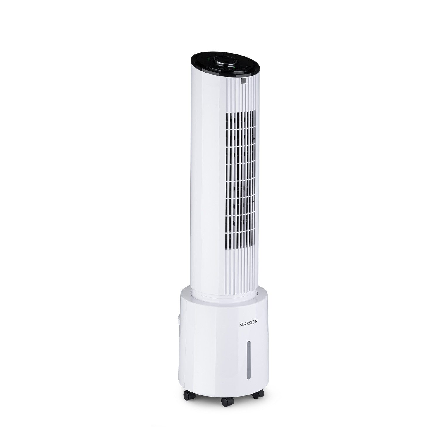 Vierfach erfrischend im stilvollen Lüftungsturm: Der Klarstein Waterfall 4-in-1-Luftkühler versorgt dich als Ventilator, Luftkühler, Luftreiniger und Luftbefeuchter mit einer kühlen Brise. Mit einem kraftvollen Luftdurchsatz von 400 m³/h versetzt der Klarstein Waterfall als Ventilator träge Sommerluft mit 3 Geschwindigkeiten in Bewegung - im Naturwind-, Schlaf- oder Normal-Modus. In Kombination mit der Luftkühler-Funktion wird der Luftstrom zusätzlich angenehm gekühlt, indem das Wasser aus dem 4 Liter großen Tank über das Cooling Pad verdunstet. Als Luftbefeuchter sagt er auch im Winter trockener Heizungsluft den Kampf an und der Ionisator entfernt Staub- und Schmutzpartikel aus der Luft.
