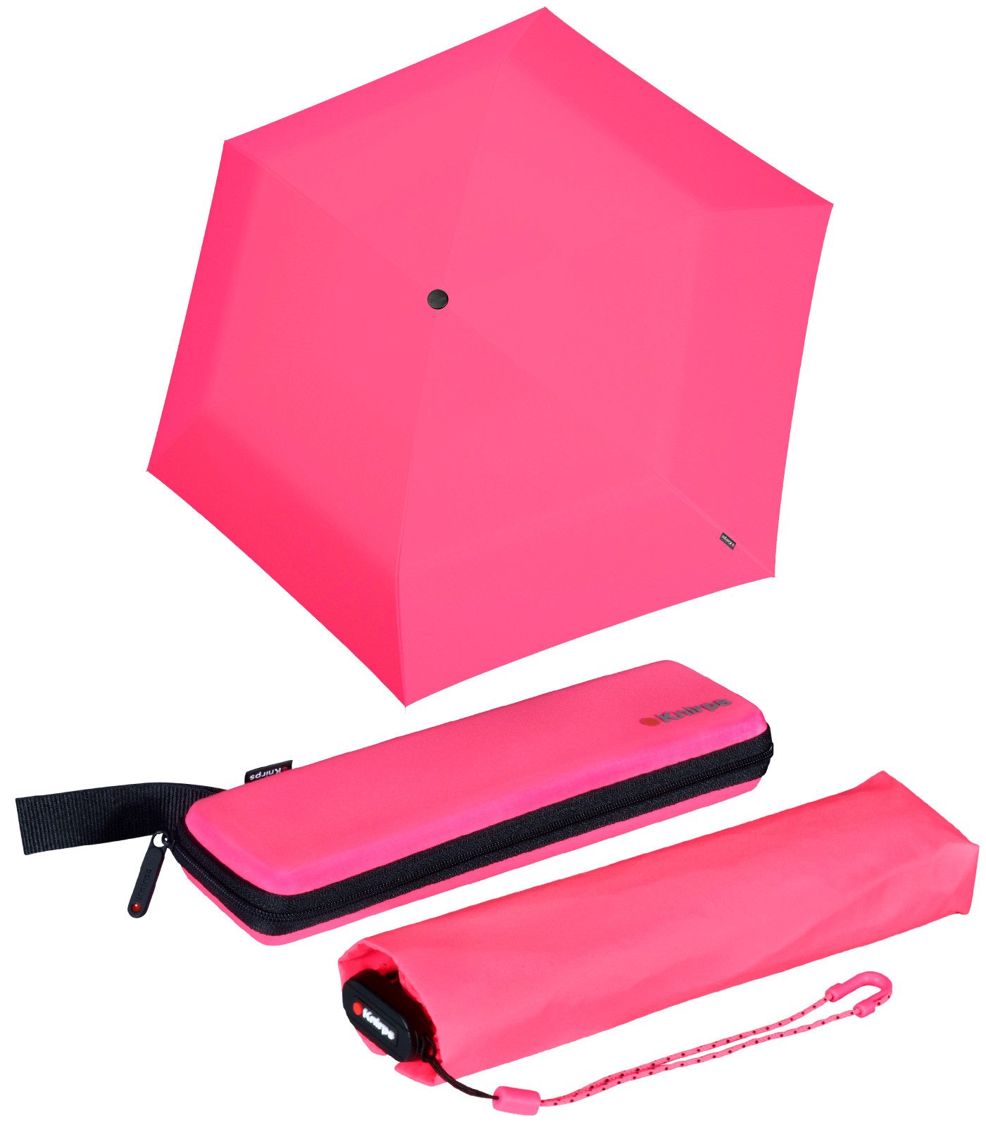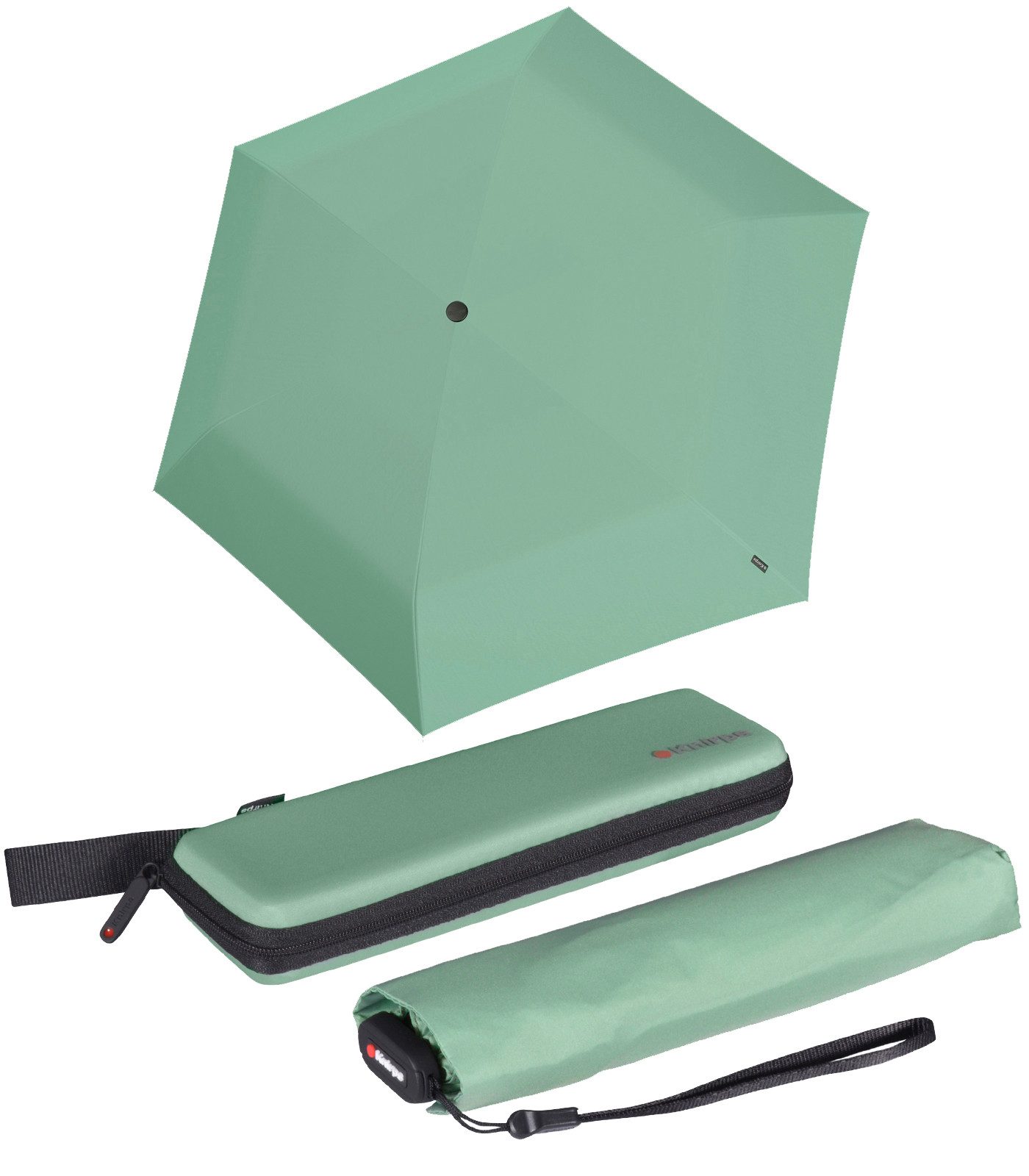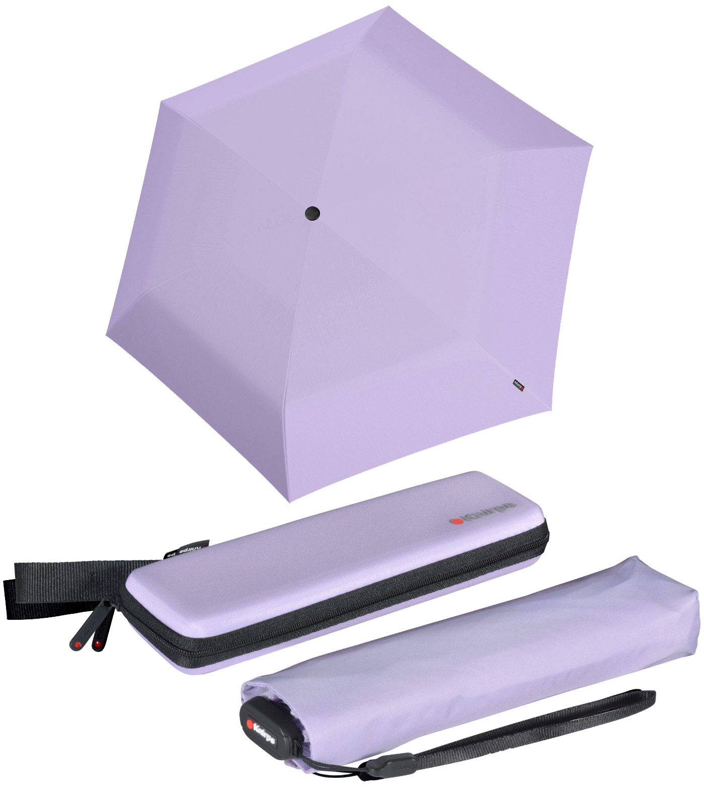 Der US.050 ist dank des Aluminium-Fiberglas-Materialmixes extrem leicht und mit seinen Gewicht von nur ca. 140 g wesentlich leichter als andere kleine Taschenschirme. Впередhin zeichnet diesen Schirm die extrem flache Bauart aus, so dass er nicht nur in die Handtasche passt, sondern auch in Jackentaschen. Geliefert wird der Schirm im praktischen, stabilen EVA-Etui mit Gürtelschlaufe zur sicheren Aufbewahrung.