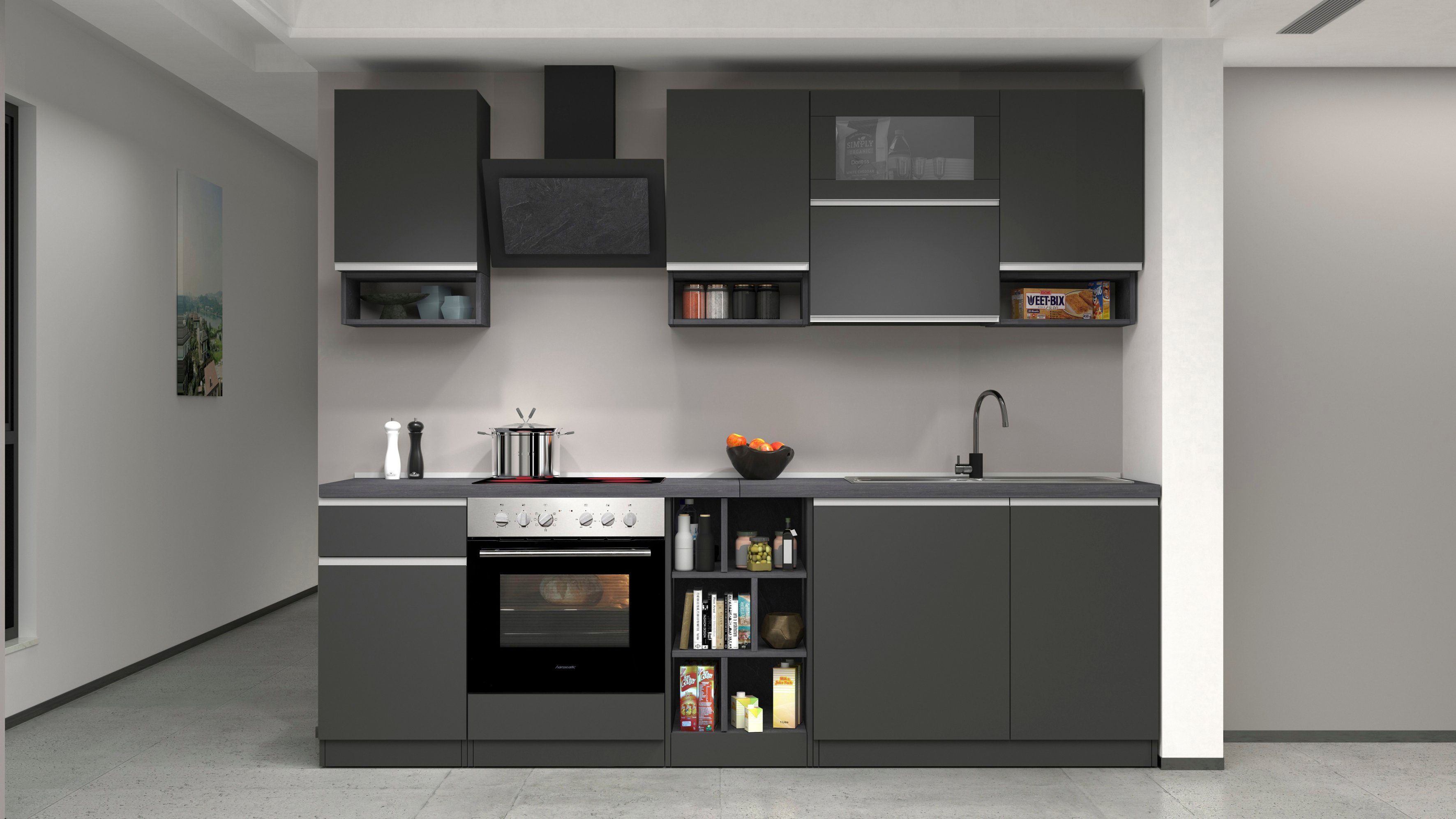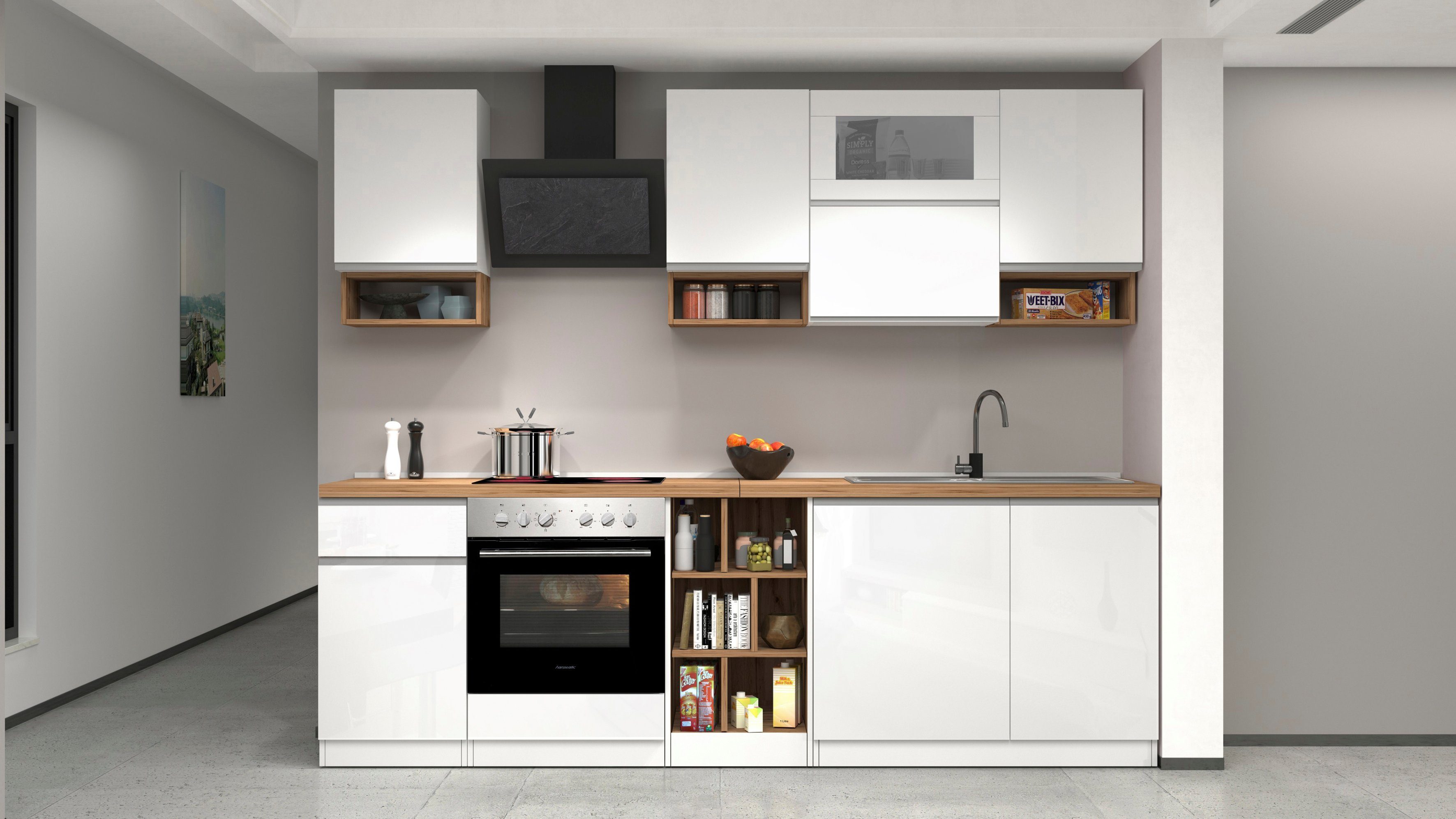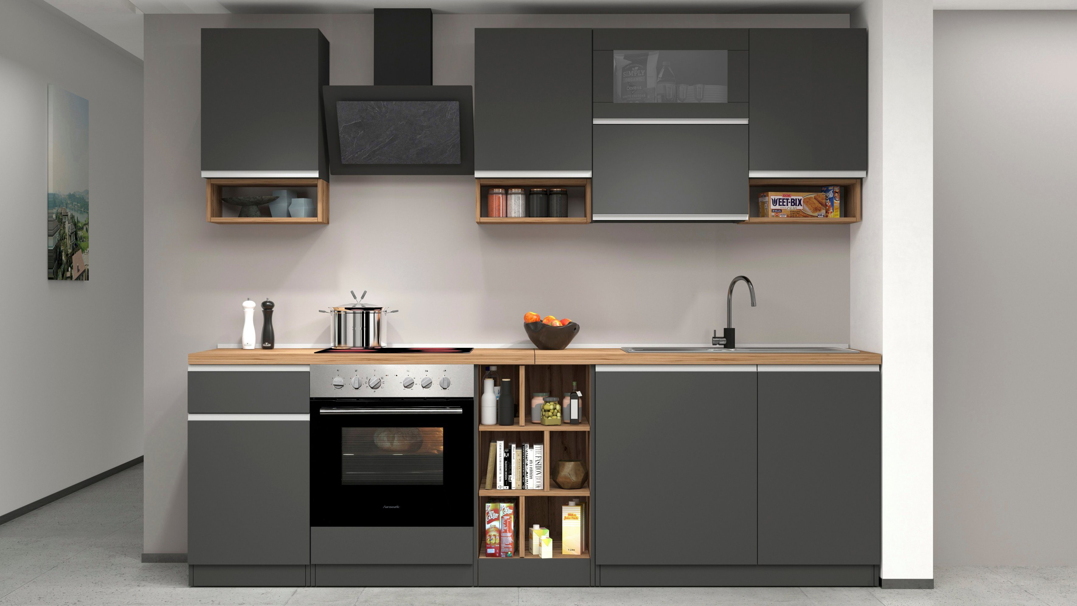 Informationen Arbeitsplatte | ohne Ausschnitte - dadurch sind die Schränke zum Teil variabel stellbar |