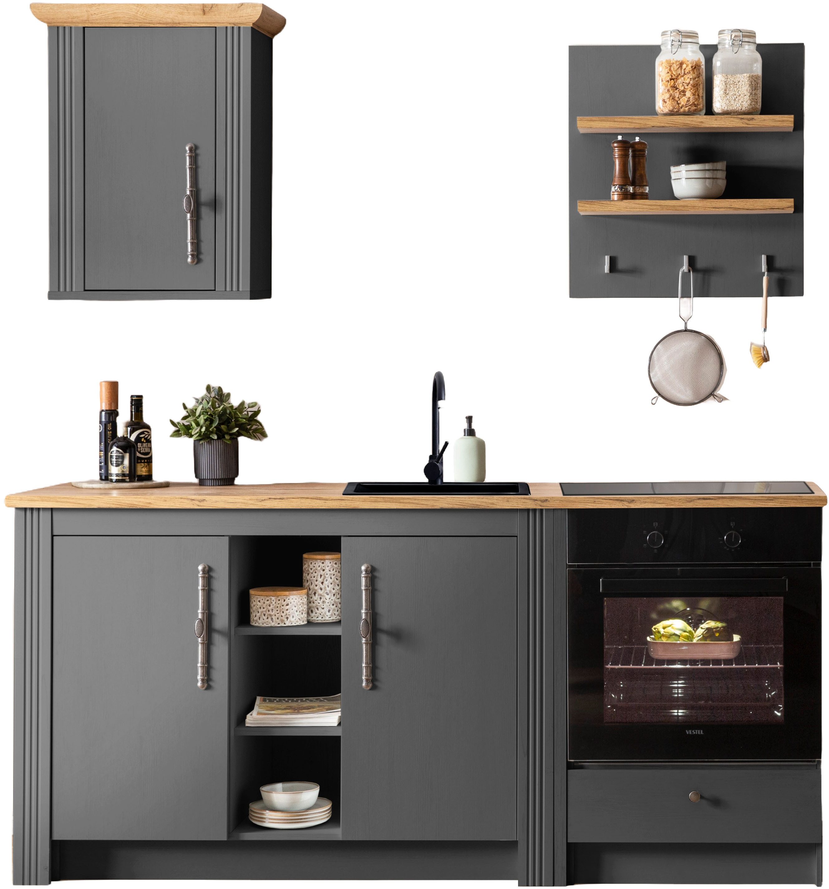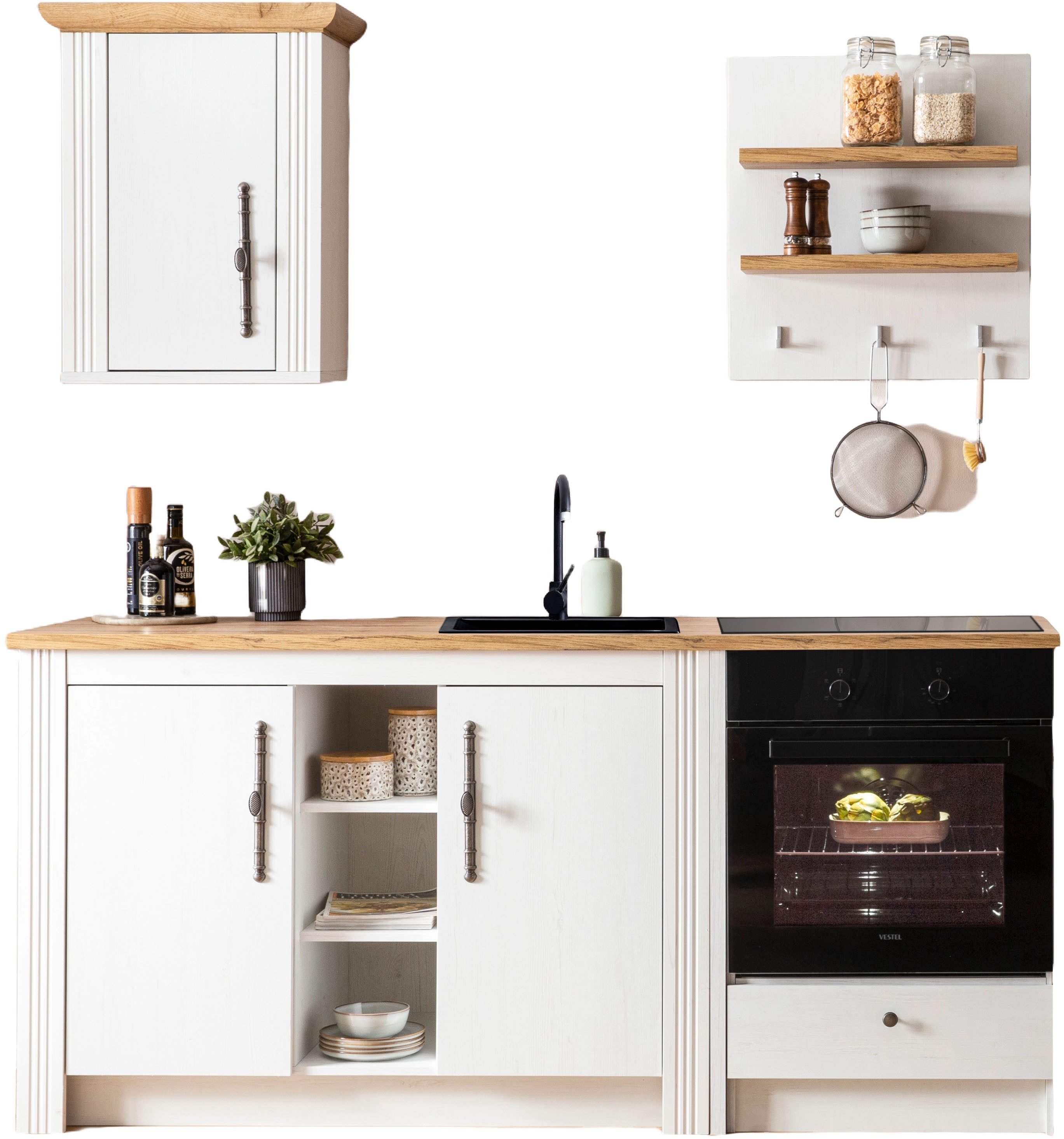 Set beinhaltet | 1x Kommode, 1x Wandpaneel, 1x Hängeschrank, 1x Herdumbau |