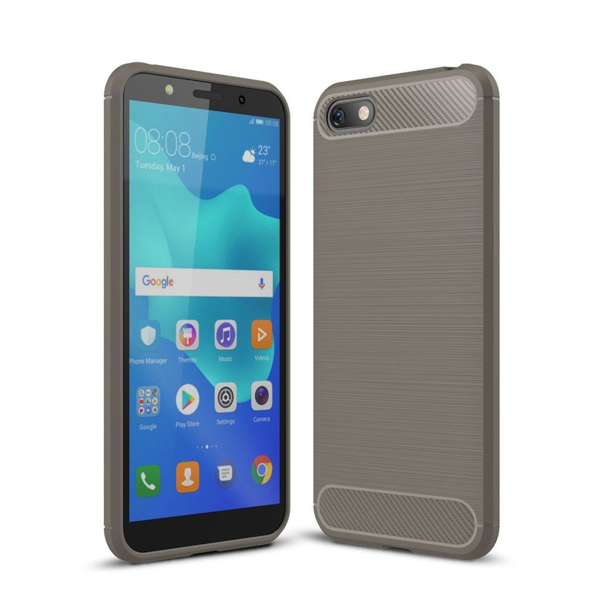 Besondere Merkmale | Huawei Y5 (2018) Handyhülle Carbon Optik Backcover Grau |