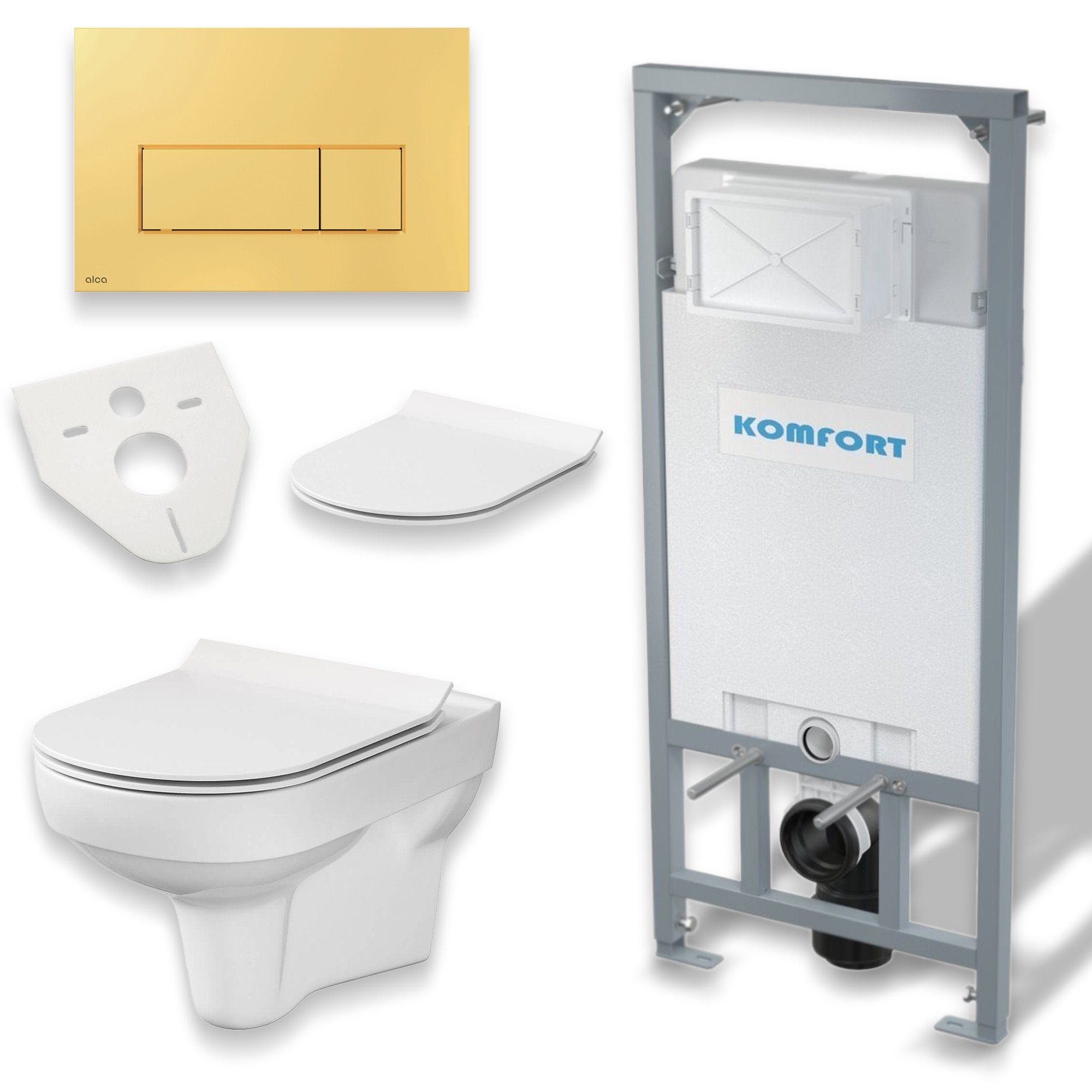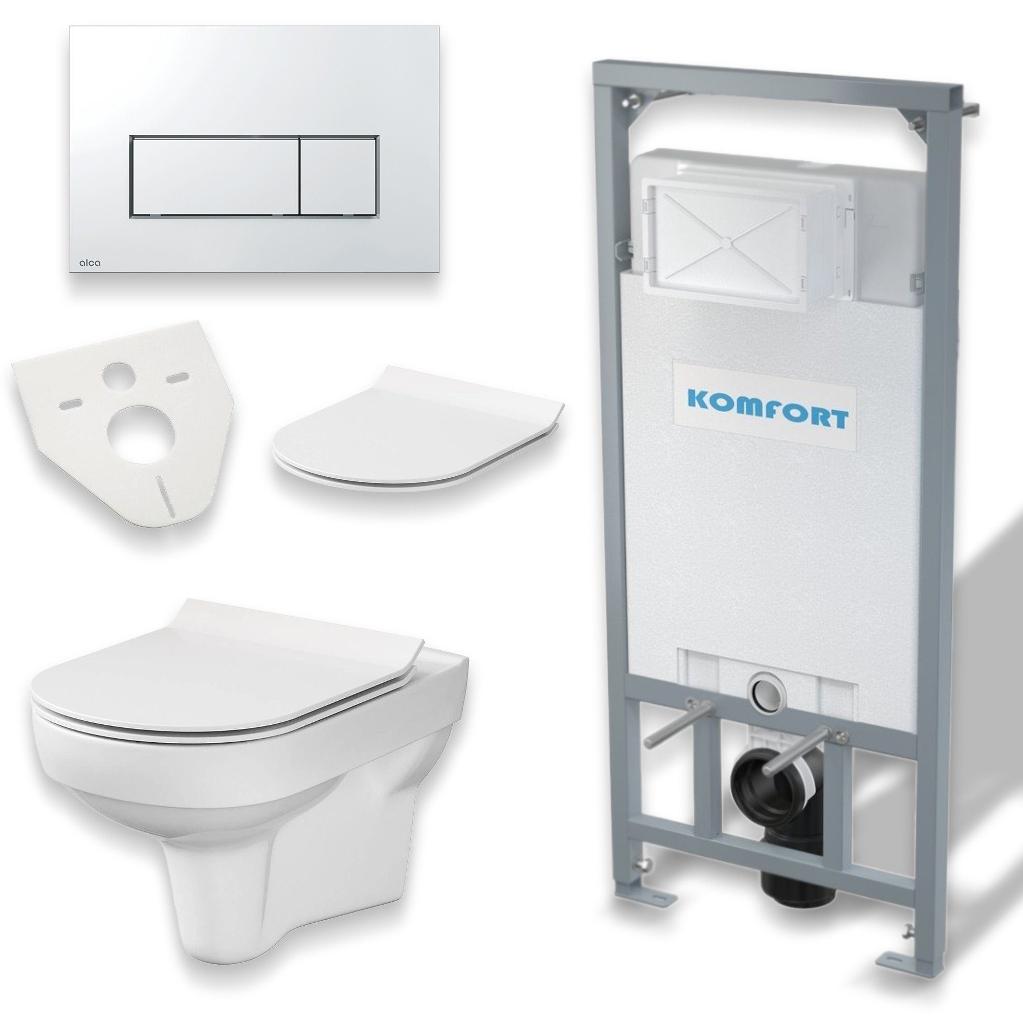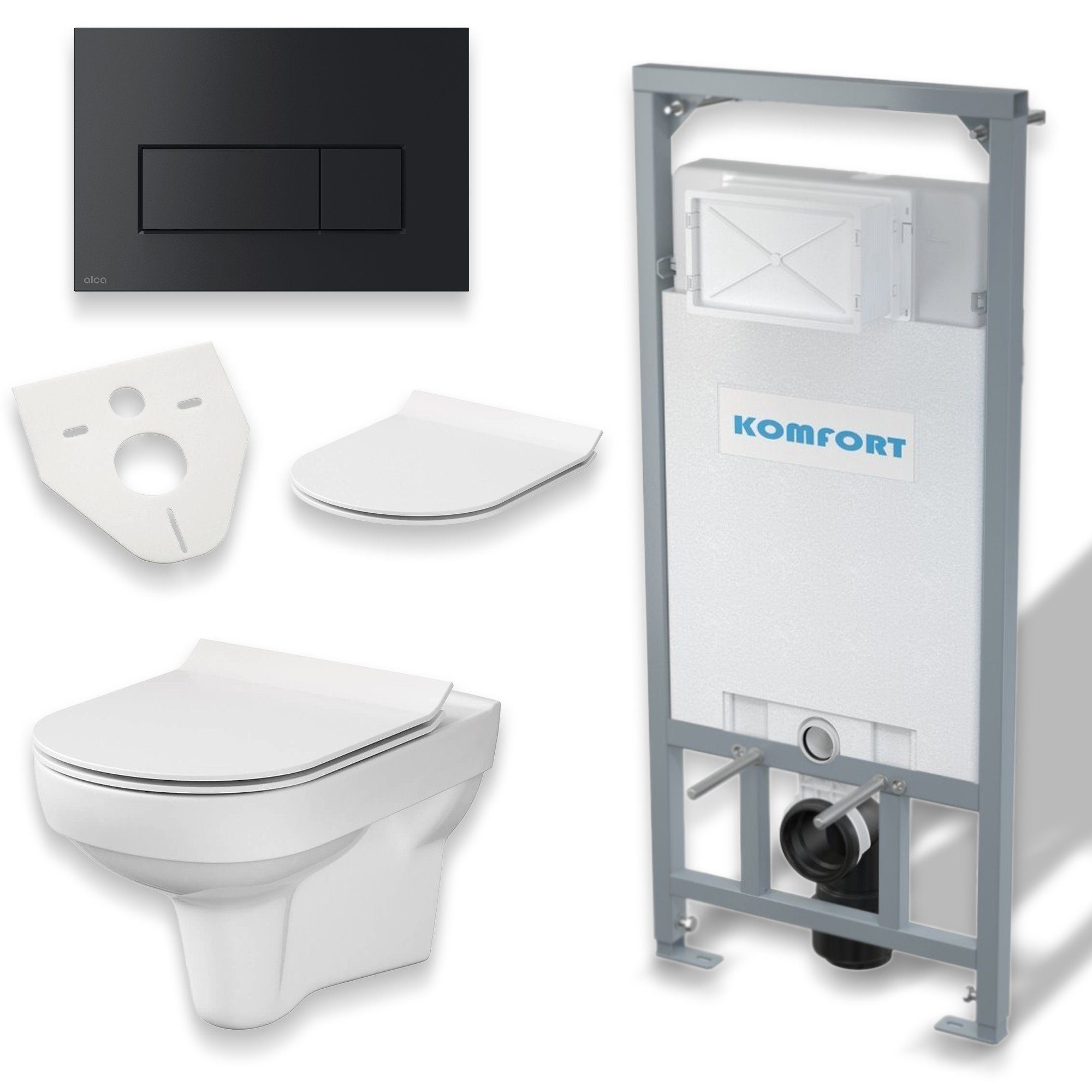 Set beinhaltet | Wand-WC, Vorwandelement, Betätigungsplatte, Slim WC-Sitz, Schallschutzmatte |