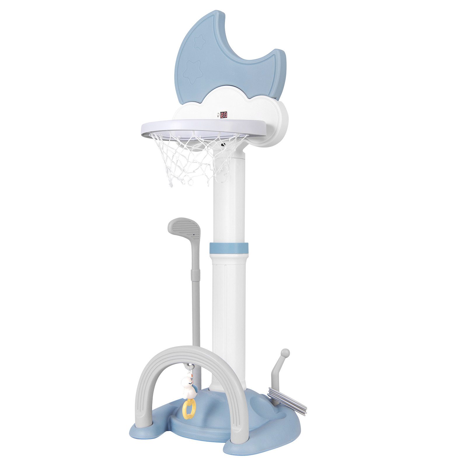 Entdecken Sie mit dem innovativen 4-in-1-Sportzentrum eine neue Art für Ihr Kind zu spielen und zu lernen. Dieser verstellbare Basketballkorb ist ein vielseitiges Aktivitätsset, das Kinder beim Wachsen unterstützt und ihnen Spaß macht. Es bietet verschiedene Sportspiele als abwechslungsreiche Methode zu normaler Fortbewegung. Die höhenverstellbaren Funktionen ermöglichen die Nutzung dieses Ständers mit fortschreitendem Alter ihrer Kinder. Darüber hinaus verfügt dieses Set über eine mondförmige elektronische Anzeigetafel für Echtzeit-Feedback und eine robuste Konstruktion mit hochwertigen Materialien für das Spielen im Innen- und Außenbereich.