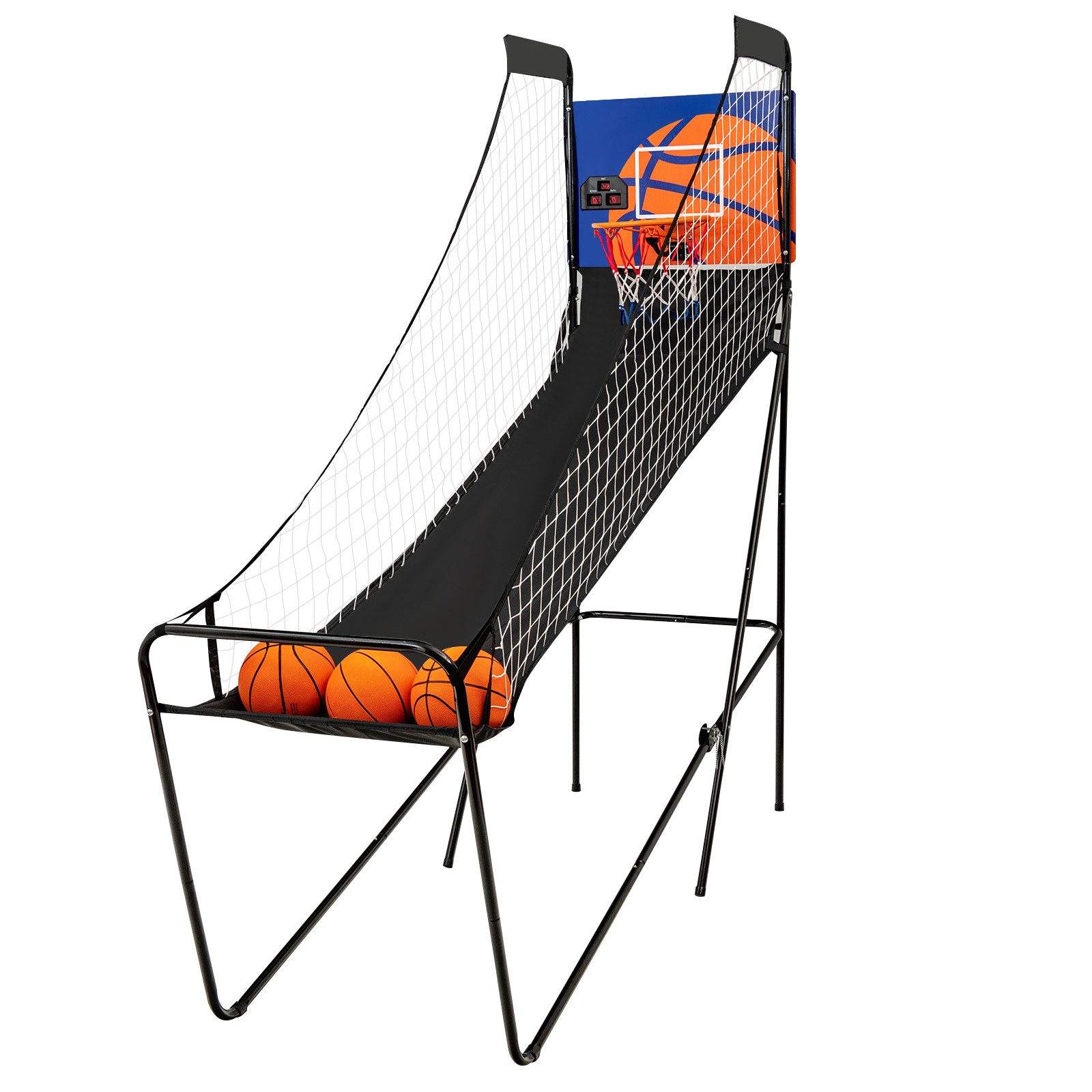 Es wird mit 3 Basketbällen und einer Pumpe geliefert, wodurch Sie sich spannenden Herausforderungen gegen Freunde und Familie stellen können. Die Maschine besteht aus hochwertigem Stahl, um besonders sicher und stabil zu sein. Der robuste Korbring hält dem Aufprall des Balls stand, welcher über die Rampe aus reißfestem Oxford-Stoff zurückrollt. Bei Nichtgebrauch können Sie sie platzsparend zusammenklappen. Mit diesem Basketballspiel ist stundenlanger Spaß garantiert!