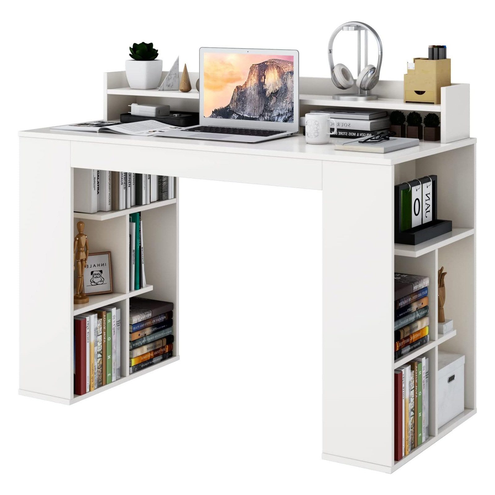 Als Schreibtisch verfügt er nicht nur über eine geräumige Tischplatte, sondern auch über ein Monitorständer und drei Ablagefächer auf beiden Seiten, damit Sie Ihren Computer und Ihre Büroutensilien gut unterbringen können. Neben seiner praktischen Funktion hat der weiße Computertisch auch ein stilvolles und attraktives Aussehen. So wird er auch eine schöne Ergänzung für Ihr Interieur sein.