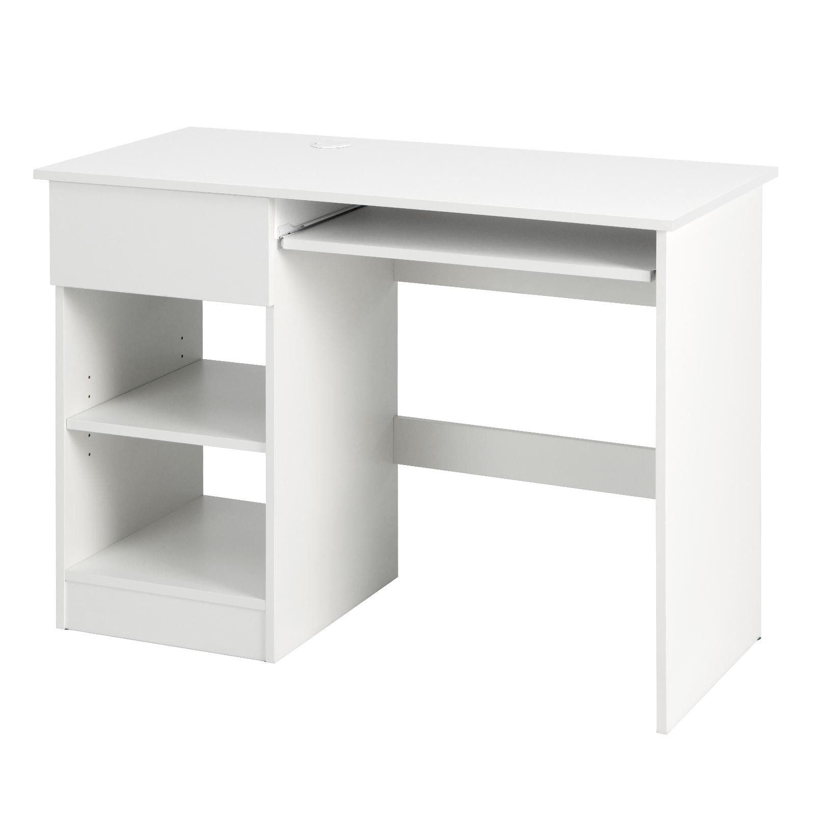 Fügen Sie diesen modernen Computertisch Ihrem Zuhause oder Büro hinzu! Mit einer geräumigen Tischplatte und mehreren Fächern ist dieser Computertisch in der Lage, Ihren Computer, Ihre Tastatur, Ihren Desktop-PC, Dokumente und Bürobedarf unterzubringen, was eine wichtige Rolle bei der Steigerung Ihrer Produktivität spielt. Hergestellt aus hochwertigen Holzplatten mit Melaminbeschichtung und Metallbeschlägen, bietet Ihnen der PC-Tisch eine sichere und dauerhafte Nutzung. Darüber hinaus ist das verstellbare und abnehmbare Regal für Ihre unterschiedlichen Bedürfnisse konzipiert. Sie können diesen einfachen Schreibtisch je nach Kontext als Studio-Schreibtisch, Gaming-Schreibtisch oder Schminktisch verwenden.