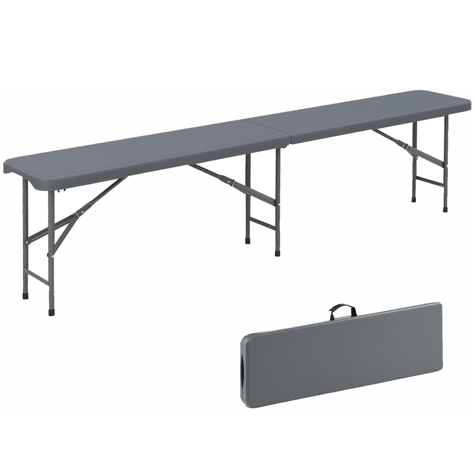 Entdecken Sie den Komfort und die Langlebigkeit unsere Bierbank, die all Ihren Sitzbedürfnissen im Freien gerecht wird. Die Bank verfügt über eine extra lange 180 cm lange HDPE-Sitzfläche, die sonnenbeständig, wasserfest und lichtbeständig ist und sich für verschiedene Outdoor-Veranstaltungen eignet. Die robusten Metallbeine mit Gelenkverriegelung bieten außergewöhnliche Stabilität und sind bis zu 600 kg belastbar. Sicherheit hat oberste Priorität, und unsere Bank ist mit einem sicheren Verriegelungsmechanismus ausgestattet, der ein unerwartetes Zusammenklappen oder Aufklappen verhindert. Die Gartenbank verfügt über einen praktischen Tragegriff für bequemen Transport und Lagerung. Sie eignet sich für verschiedene Anlässe und bietet eine vielseitige Sitzlösung für Ihre nächste Outdoor-Veranstaltung, Ihren nächsten Wettkampf oder Ihr Familientreffen.