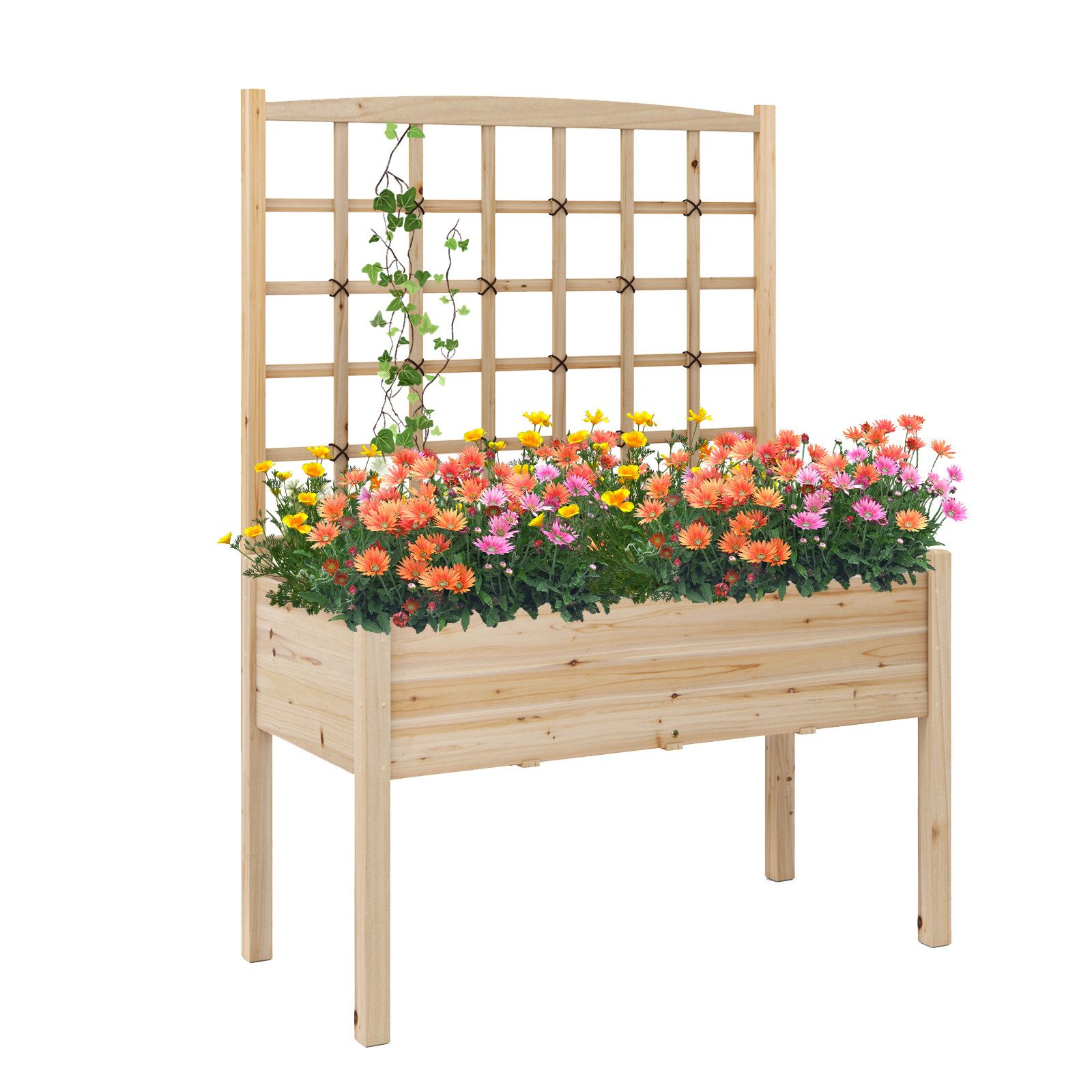 Starten Sie in einen naturnahen Lebensstil mit diesem Hochbeet aus Holz. Es ist aus hochwertigem Tannenholz gefertigt, das für seine Langlebigkeit und Widerstandsfähigkeit gegen raue Bedingungen bekannt ist. Der geräumige Innenraum bietet viel Platz für den Anbau vielfältiger Pflanzen, von üppigem Gemüse bis hin zu wunderschönen Blumen, und bereichert so Ihre Gartenvielfalt. Das integrierte Spalier eignet sich ideal als Stütze für Kletterpflanzen und verschönert Ihren Garten. Der erhöhte Pflanzkasten verfügt über vier effiziente Drainagelöcher, die überschüssiges Wasser zuverlässig ableiten und Ihre Pflanzen gesund und gedeihen lassen. Das ergonomisch erhöhte Design auf stabilen Beinen macht die Gartenarbeit für die Benutzer weniger körperlich anstrengend.