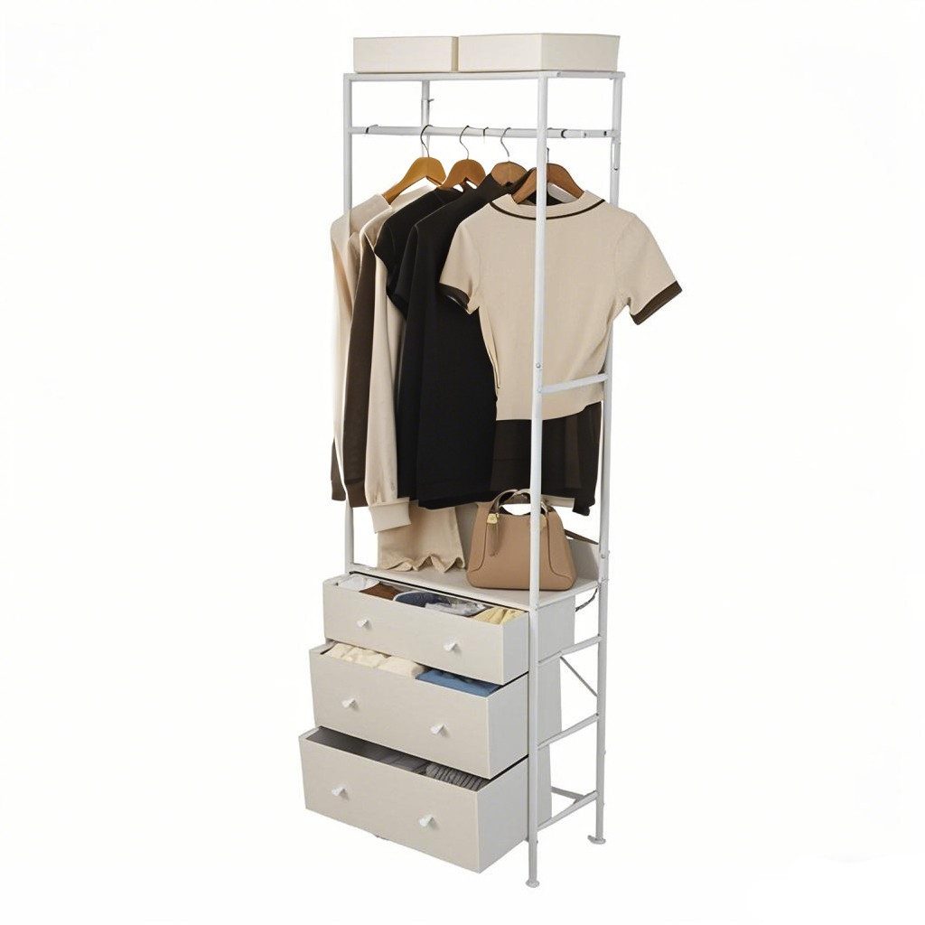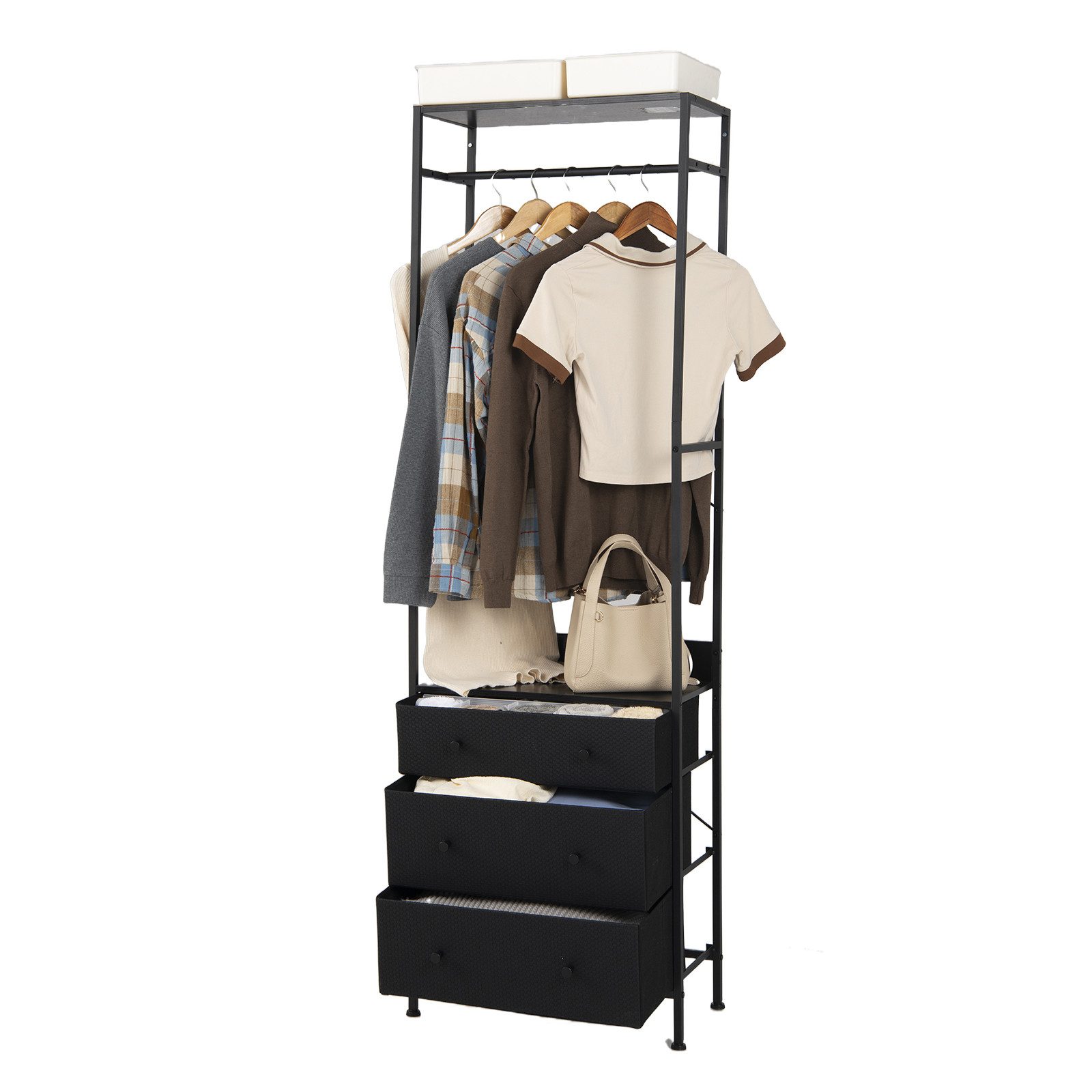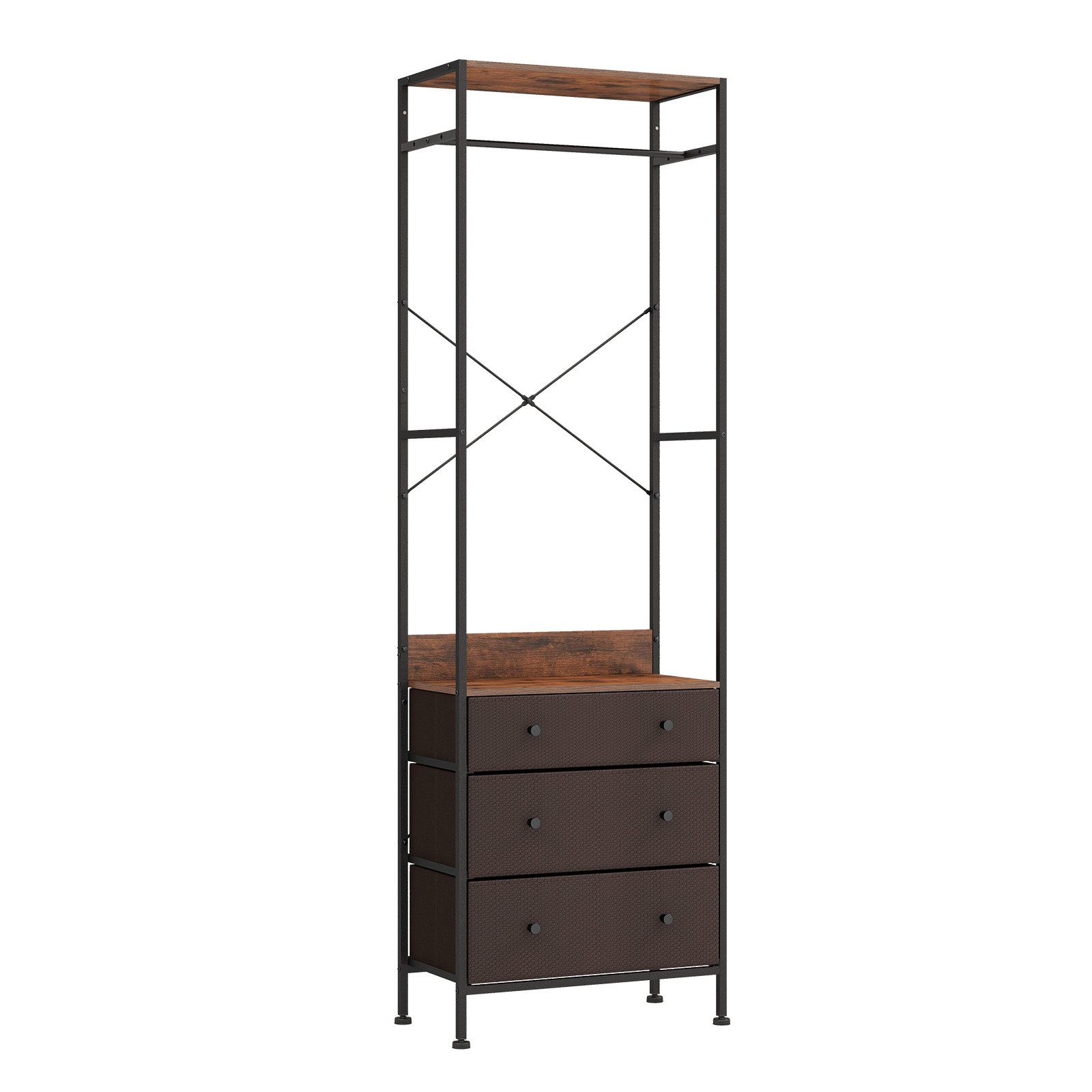 Maximieren Sie Ihren Stauraum und optimieren Sie die Organisation mit dieser vielseitigen Kleiderkommode. Mit einem oberen Regal, einer Kleiderstange, einem mittleren Regal und 3 faltbaren Stoffschubladen bietet sie anpassbare Aufbewahrungsmöglichkeiten. Dieser Kleiderständer mit seinem robusten Metallrahmen und den X-förmigen Streben ist zuverlässig und stabil. Leicht zu ziehende Knöpfe und einstellbare Funktionen machen die Verwendung zum Kinderspiel. Werten Sie Ihren Wohnraum jetzt mit dieser stilvollen und praktischen Kleiderkommode auf.
