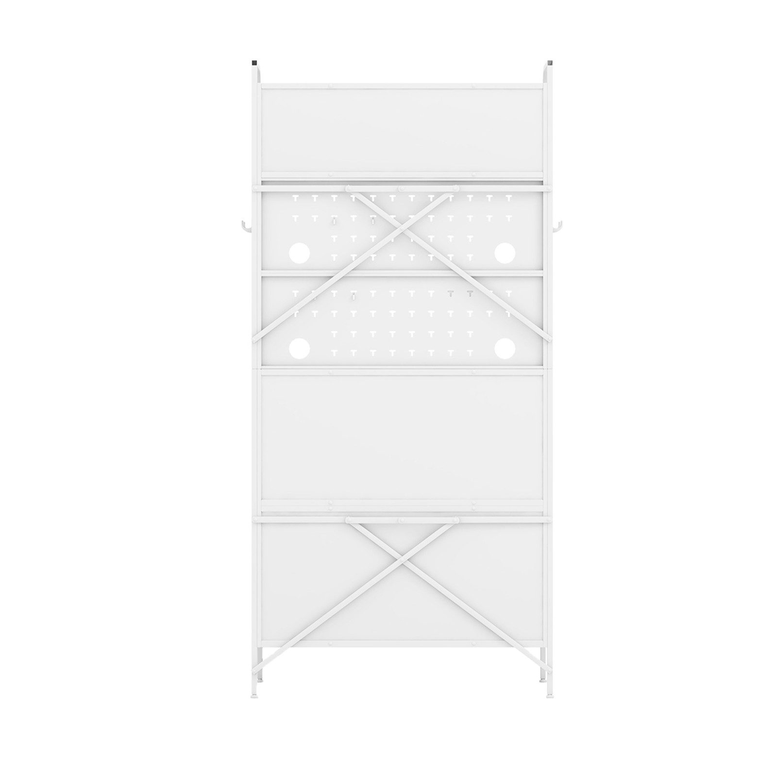 (ми ще працюємо над перекладом, вибачте за незручності): Dieses Sideboard ist aus robustem Metall gefertigt und daher sehr stabil und langlebig. Die Innenteiler des doppeltürigen Schranks sind in 5 Positionen verstellbar, sodass sie perfekt für Gegenstände unterschiedlicher Розмір geeignet sind. Dank des Designs der Stecktafeln können Sie Ihre Kochutensilien aufhängen und organisieren und haben so alles in Reichweite. Außerdem erleichtern die aufklappbaren Türen den Zugang zu Ihren Gegenständen. Die 8 Haken und Körbe bieten außerdem viel Stauraum für Ihre Küchenutensilien. Erwähnenswert ist, dass die Rückseite des Schranks mit einer Kippsicherung ausgestattet ist, die für zusätzliche Stabilität und Sicherheit sorgt und die Sicherheit von Ihnen und Ihrer Familie gewährleistet. Der minimalistische Look ist perfekt für die Einrichtung von Küchen und Esszimmern.