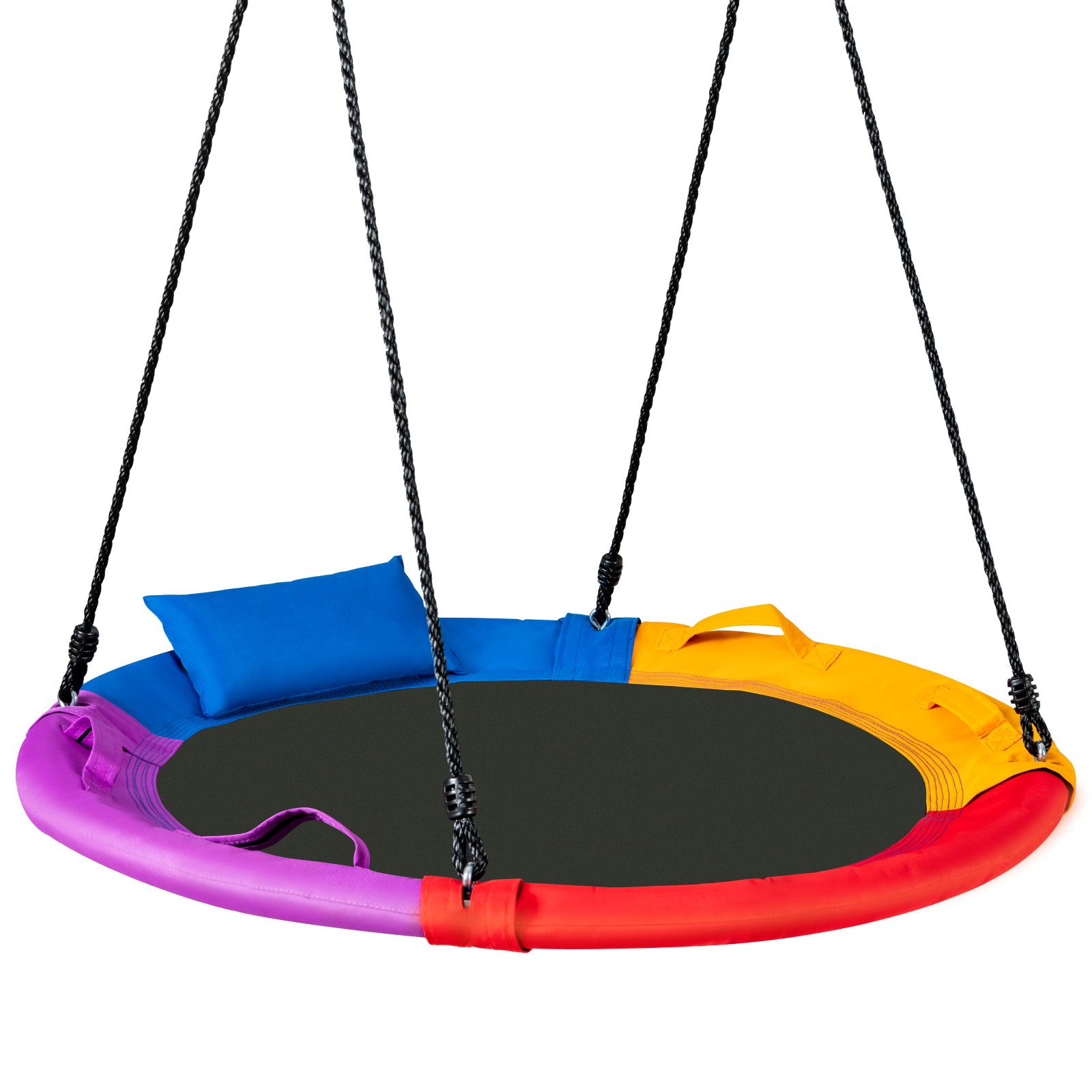 Für Spaß und Entspannung zugleich sorgt die Nestschaukel von KOMFOTT! Die tolle Nestschaukel mit einem Durchmesser von 100 cm bietet viel Platz. Somit finden zwei Schaukelverliebte gleich auf der großen Sitzfläche Platz. Nicht nur Kinder, sondern auch Erwachsene können die frische Luft genießen und sich beim Lesen oder Spielen vom Wind schaukeln zu lassen. Aus strapazierfähigen PE-Seilen und robustem Stahlrahmen ist die Schaukel mit bis zu 150 kg belastbar und Sie sind sicher hoch in der Luft. Mit verstellbarer Довжина der Seile ist die Schaukel höhenverstellbar und lässt sich problemlos montieren. Für den lustigen Schaukel-Spaß der ganzen Familie-die Nestschaukel von KOMFOTT.