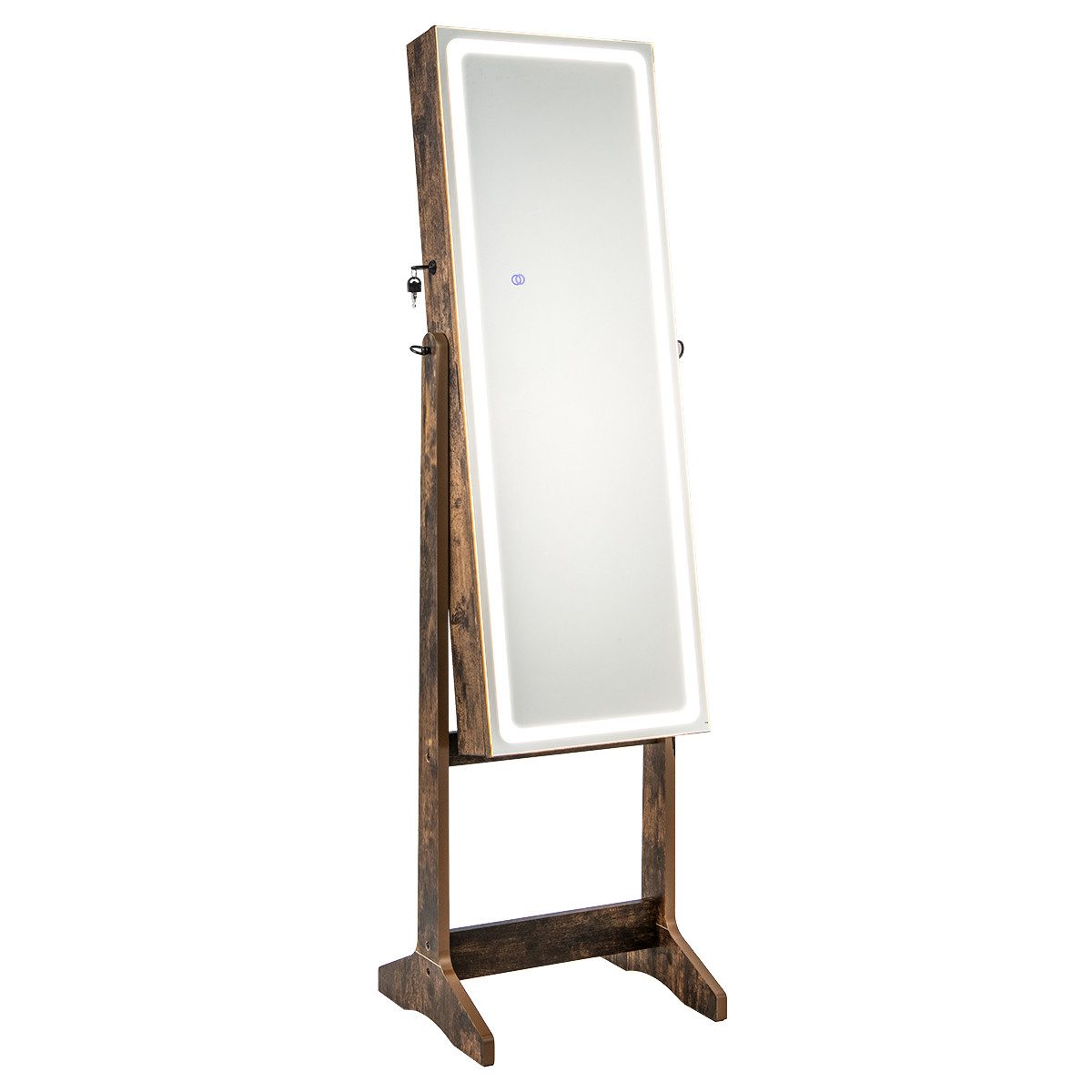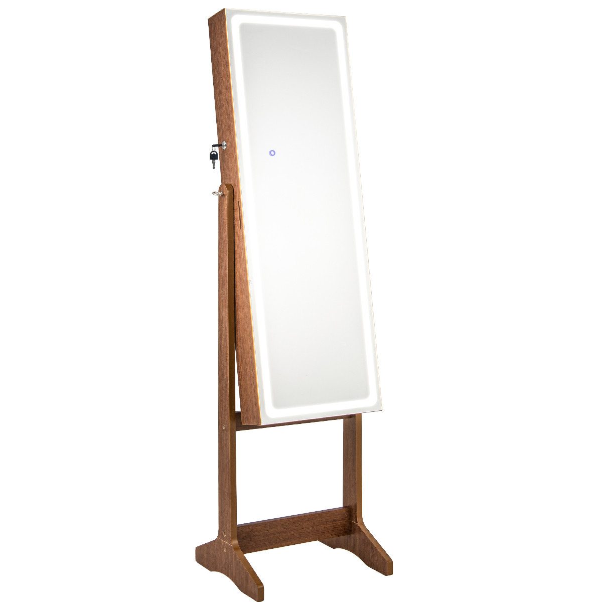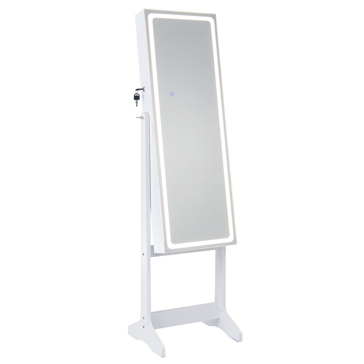 (ми ще працюємо над перекладом, вибачте за незручності): Werten Sie Ihre Morgenroutine mit diesem Schmuckschrank mit LED-Beleuchtung auf! Sowohl der Ganzkörperspiegel mit LED-Beleuchtung als auch die integrierten LED-Leuchten verfügen über 3 Farbmodi und einstellbare Helligkeit, die Ihren unterschiedlichen Beleuchtungsbedürfnissen gerecht werden. Außerdem verfügt der Ganzkörperspiegel über 3 einstellbare Neigungswinkel, um eine perfekte und klare Sicht von Kopf bis Fuß zu bieten. Das Innere des Schmuckschranks ist in viele Fächer unterteilt, um all Ihren Schmuck, Ihre Kosmetika und mehr zu organisieren, nämlich 72 Ohrringfächer, 24 Ohrsteckerlöcher, 1 Aufbewahrungstasche mit Reißverschluss, 20 Halskettenhaken, 65 Ringfächer, 7 Fächer für Bürsten und Lippenstifte, 1 Armbandstange, 2 herausnehmbare Acrylregale, 1 festes Lagerregal und 2 Acrylschubladen.