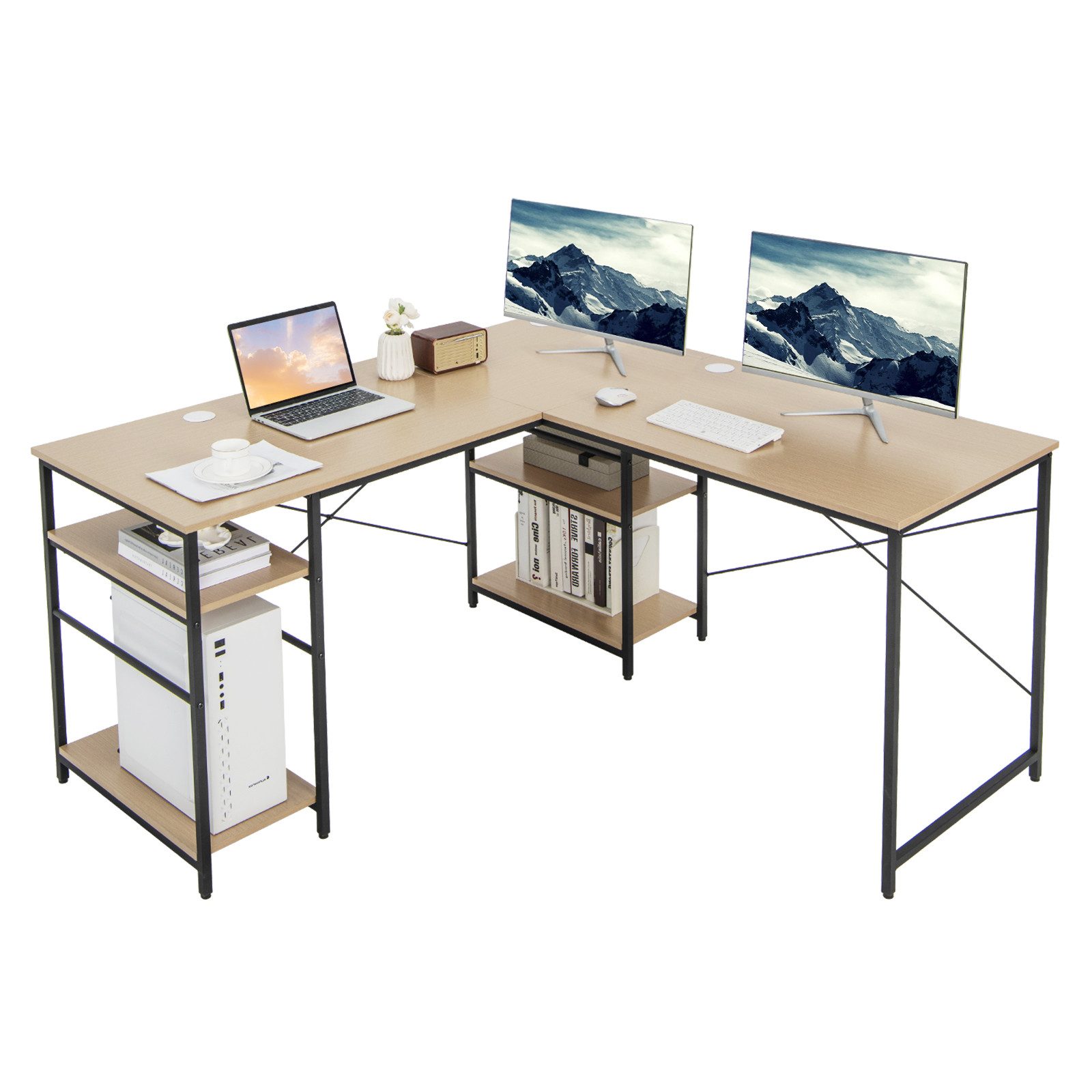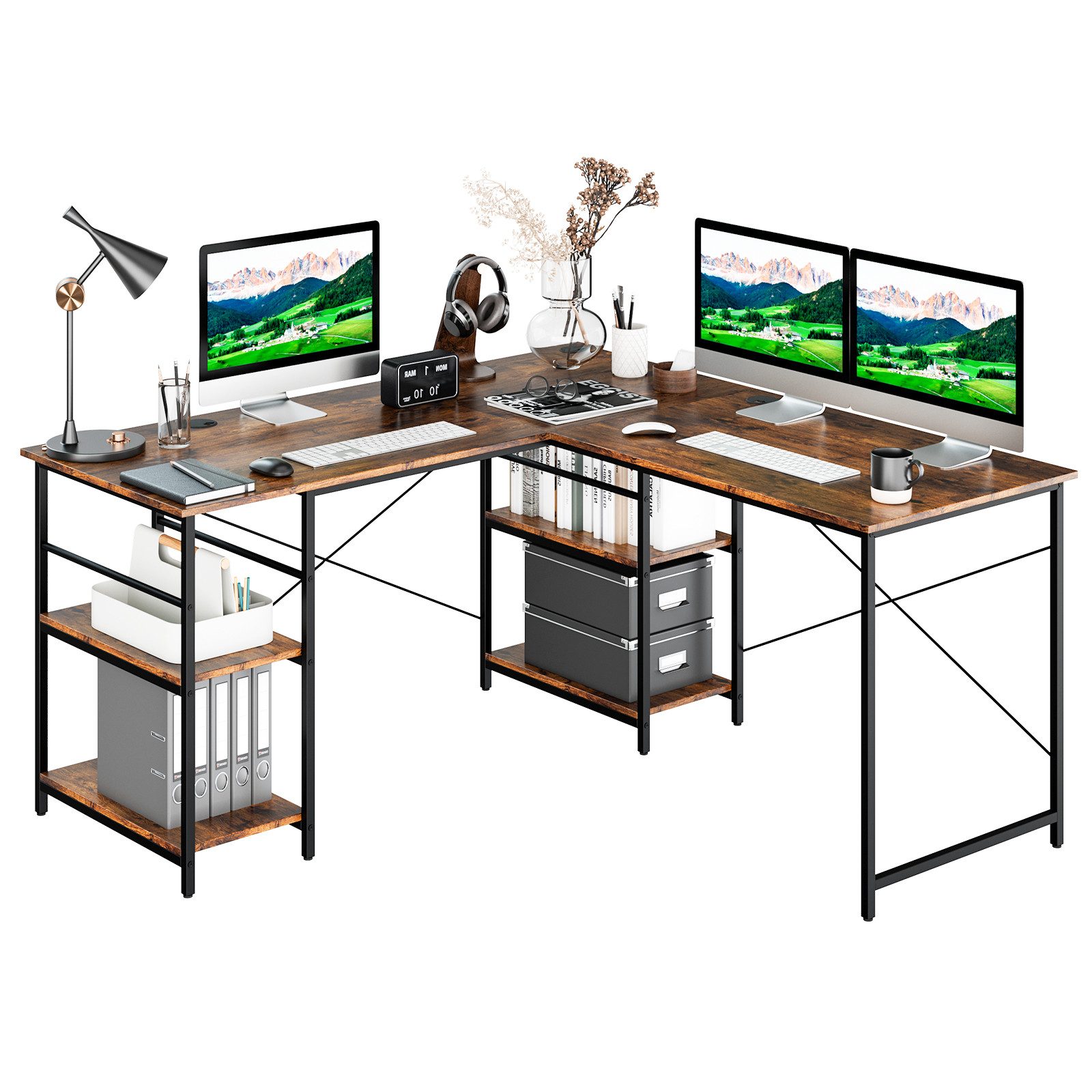 Es ist nicht nur ein L-förmiger Schreibtisch, sondern er kann auch in einen langen Schreibtisch umgewandelt werden, so dass 2 Personen zusammen arbeiten und studieren können. Unser Gaming-Schreibtisch besteht aus hochwertigem Spanholz und einem robusten Metallrahmen für eine stabile Struktur. Darüber hinaus bietet der Computertisch mit einer geräumigen Tischplatte Platz für 2 oder mehr Monitore sowie Ihre Spielkonsolen, Bücher oder Laptops. Der Schreibtisch verfügt über 3 integrierte Kabelmanagementlöcher, um Ihnen bei der Organisation Ihrer Kabel zu helfen. Außerdem wird der Schreibtisch mit 4 Lagerregalen geliefert. Sie können das Oberteil in 2 Positionen einstellen oder einfach entfernen, um einen CPU-Ständer zu schaffen. Egal, ob als PC-Schreibtisch für zu Hause, Arbeitsplatz zum Studieren, Büroschreibtisch für Unternehmen oder Schreibtisch zum Schreiben im Schlafzimmer, dieser vielseitige Tisch ist eine perfekte Wahl!