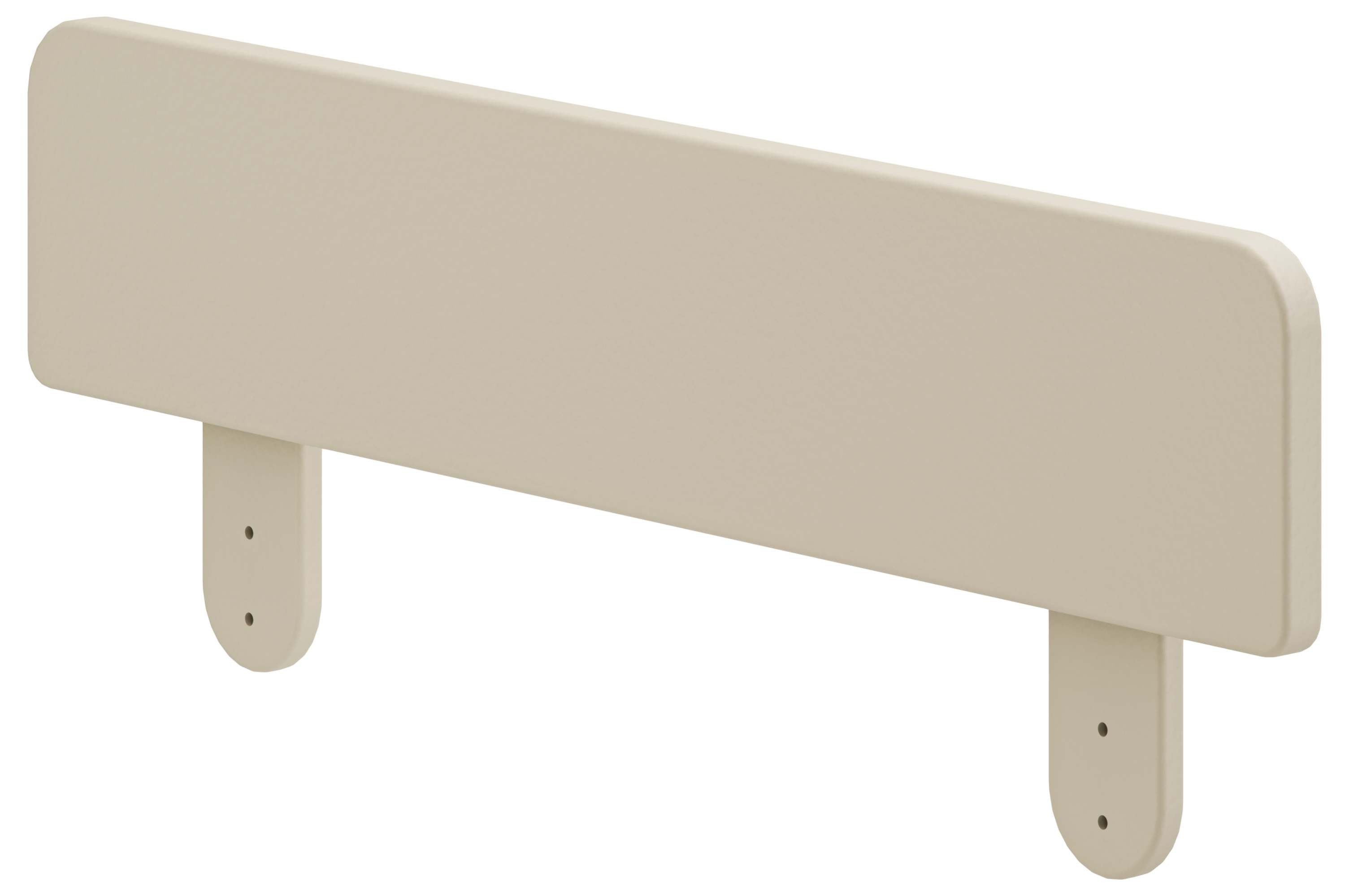 Sicherheitsgeländer für Kinderbetten, das mit Schrauben an der Innenseite des Bettrahmens befestigt wird. Es ist aus lackiertem MDF und massiven Kiefernholzstützen gefertigt.