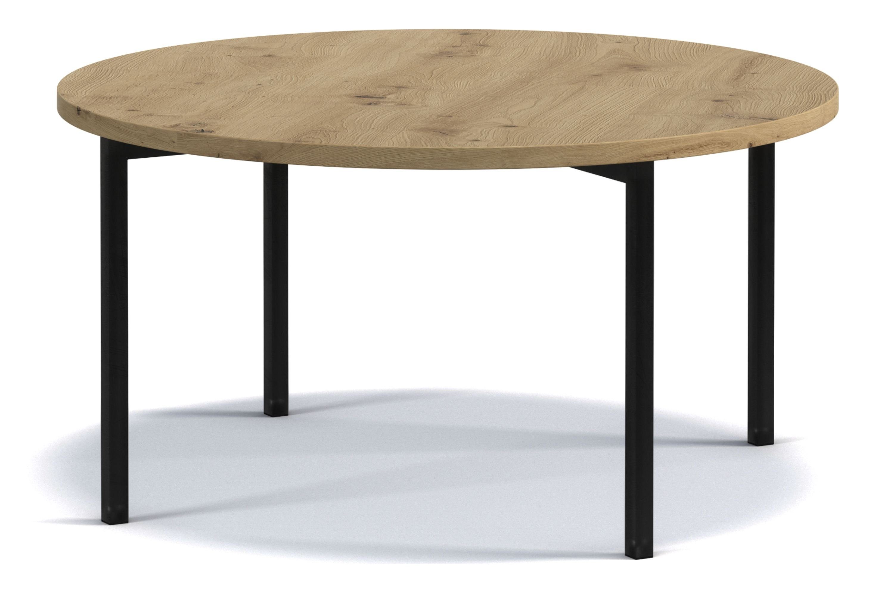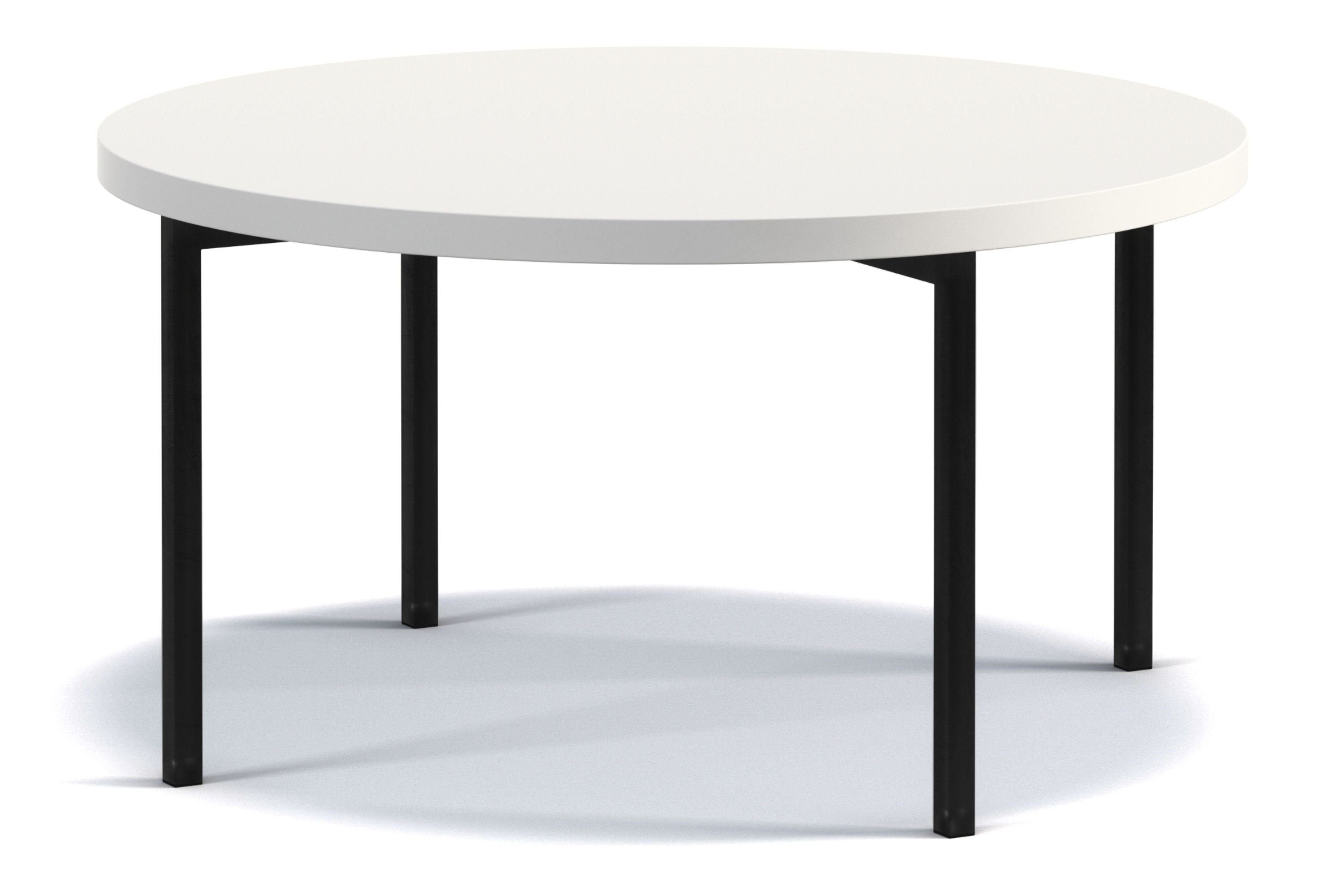 Die präzise gearbeiteten Kanten der Tischplatte aus ABS-Material tragen zur Haltbarkeit und Ästhetik des Tisches bei. Dies sind feine Details, die die sorgfältige Verarbeitung und die Aufmerksamkeit für jeden Aspekt des Produkts unterstreichen. Die schwarzen Metallbeine mit einem Durchmesser von 2 cm bilden eine solide Basis, die die gesamte Struktur trägt. Ihr minimalistisches Design harmoniert perfekt mit der runden Tischplatte.