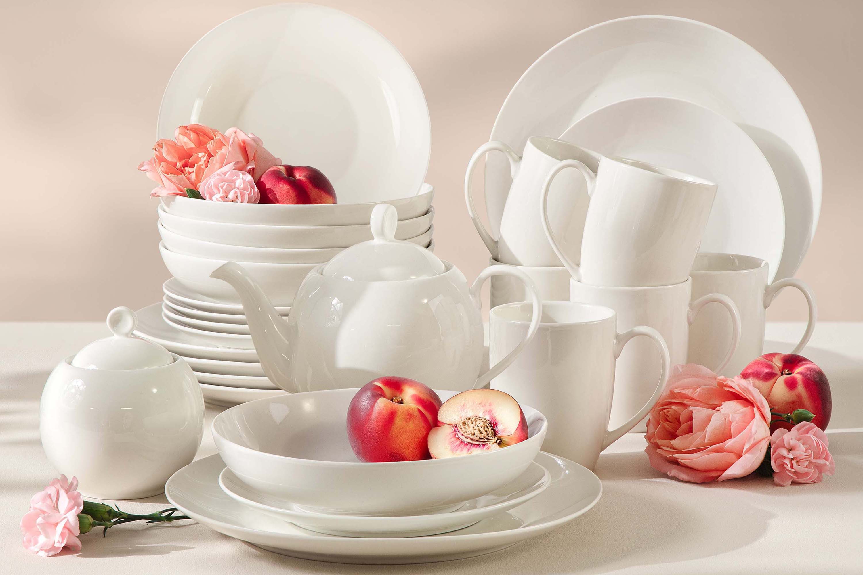 Zeitlose Eleganz - klassisches cremefarbenes Porzellan, das nie aus der Mode kommt und zu jedem Tisch passt.