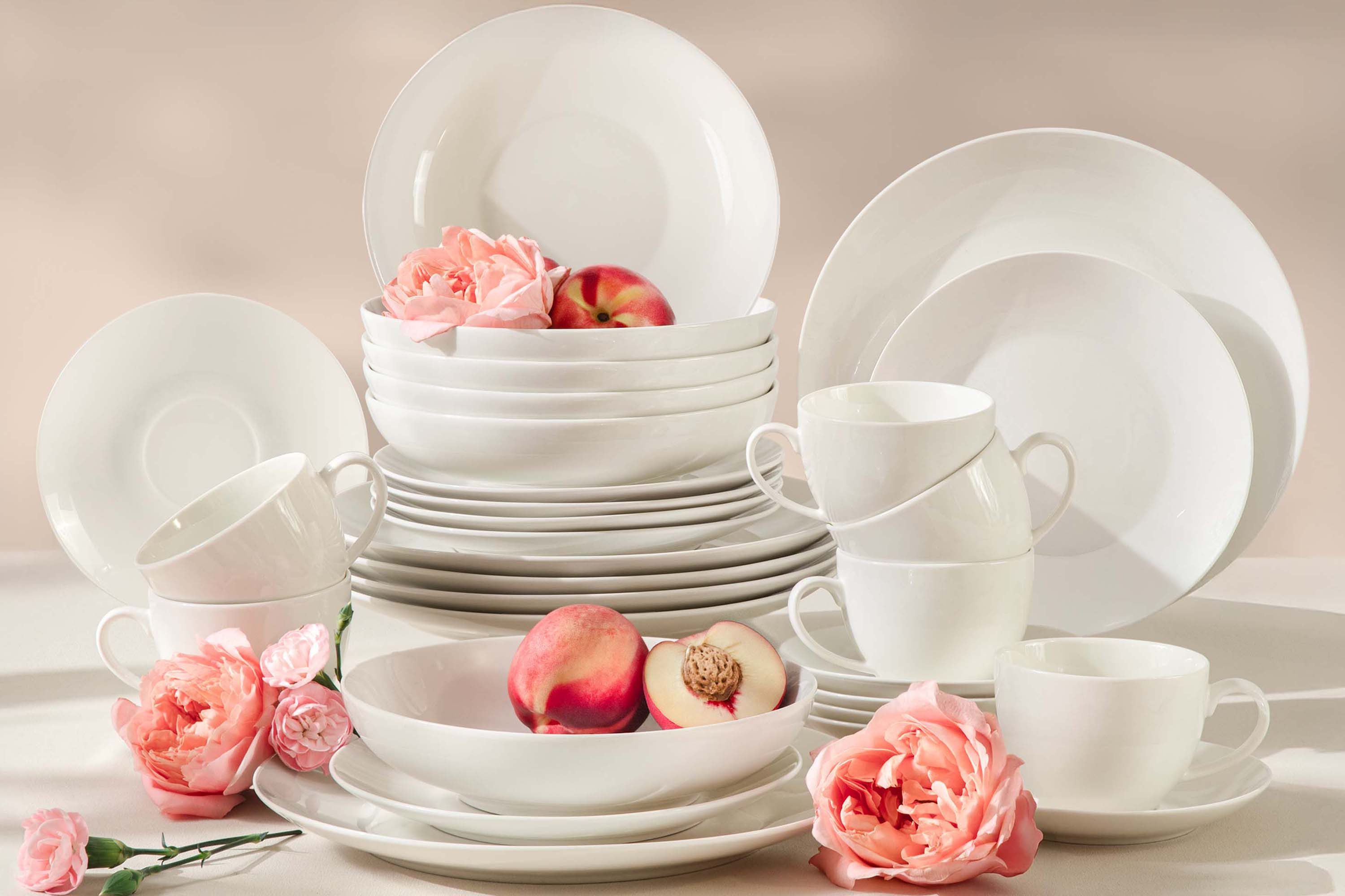 Zeitlose Eleganz - klassisches cremefarbenes Porzellan, das nie aus der Mode kommt und zu jedem Tisch passt.