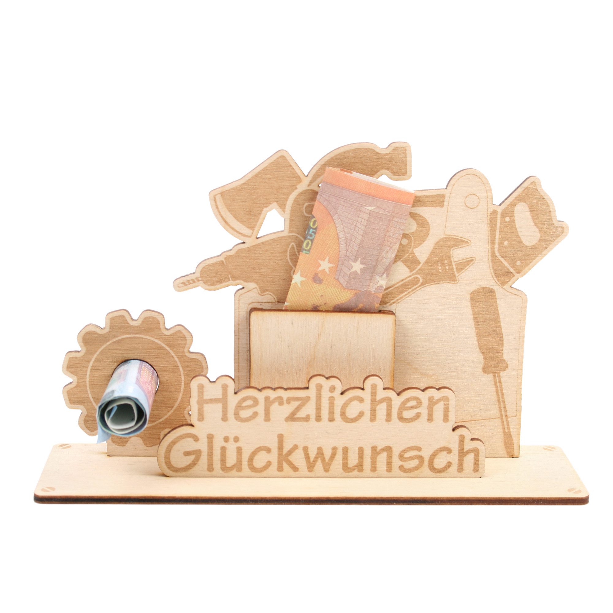 Lieferumfang | Lieferung als DIY-Bausatz im Set inkl. Holzleim Deko und Geldscheine sind nicht im Lieferumfang enthalten |