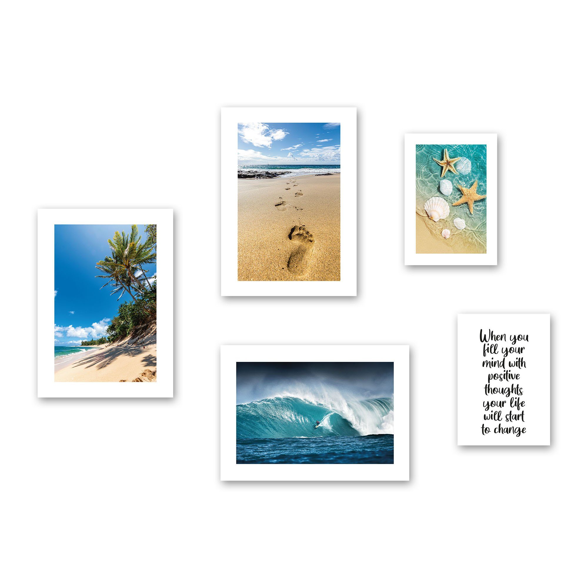 Wohne mal anders! Schluss mit langweiliger Wanddeko! Unsere 5-teiligen Posterwände kombinieren schöne Motive auf harmonische Weise und werten jeden Raum auf. Wir legen Wert auf hohe Qualität: Unsere Kunstdrucke mit brillanten Farben werden ausschließlich auf hochwertigem 250g/m² schwerem Qualitätspapier gedruckt, damit Sie lange Freude an Ihren Wandbildern haben und diese ein einzigartiges Flair in die Wohnung bringen. Mit diesem Qualitätsprodukt kaufen Sie auch "Made in Germany". Das Set beinhaltet 3x DIN A3 (29,7 x 42 cm) und 2x DIN A4 (21 x 29,7 cm) Poster. Außerdem können Sie dazu auch einen Echtholzrahmen auswählen, der farblich zu Ihrer Einrichtung passt. Wir bieten die Rahmen in Schwarz, Weiß oder Naturfarben an. Die auf den Produktfotos gezeigte Bilderanordnung nimmt etwa eine Fläche von 103x77 cm ein. Natürlich können die Bilder auch nach Lust und Laune kombiniert werden. Nutzen Sie Ihre gewünschten Bilderrahmen individuell, um ein ganz persönliches Wandbild zu zaubern. Die Posterwand ist die perfekte Deko für Ihr Wohnzimmer, Flur, Diele, Küche, Büro oder Schlafzimmer und ebenso eine ausgefallene Geschenkidee. Viele der Motive können gut kombiniert werden.