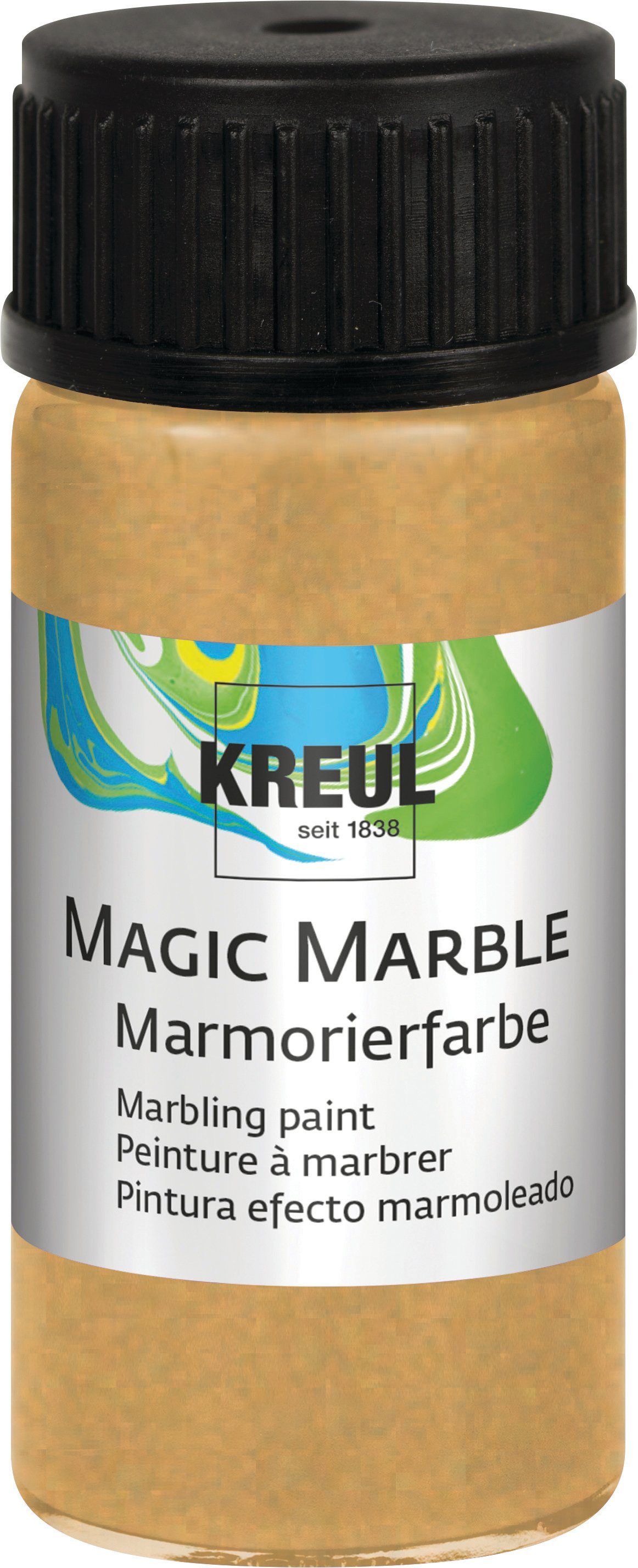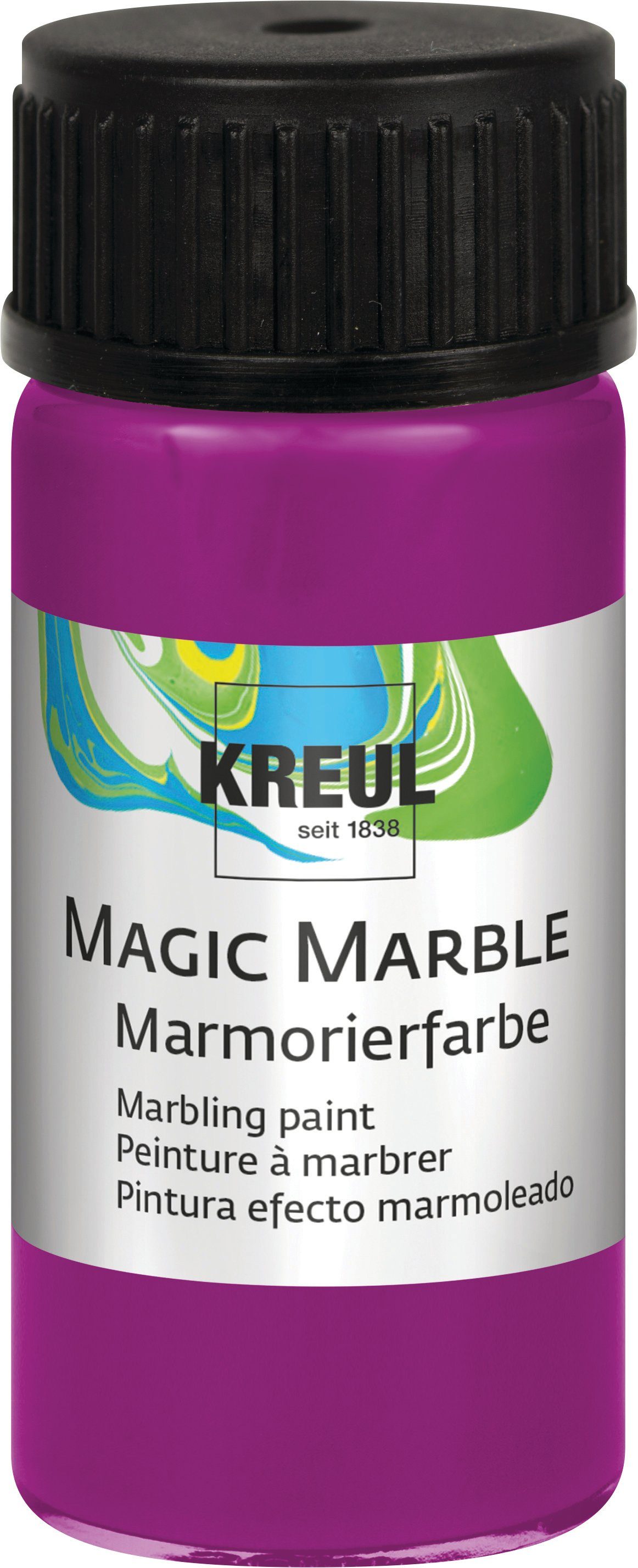 Die Magic Marble Mamorierfarben eignen sich zum Tauchmarmorieren von Holz, Glas, Kunststoff, Papier, Metall, Steingut, Terrakotta und Styropor. Die Farben haben eine hervorragende Farbbrillanz und Leuchtkraft bei einer kurzen Trocknungszeit. Die Farbe erhalten Sie im 20 ml Glas. Die kleine Öffnung mit Tropfeinsatz ermöglicht leichtes und genaues Arbeiten. Für stylische Farbeffekte kombinieren Kreative maximal 3 Farbtöne pro Tauchgang. Die marmorierte Oberfläche wirkt wie bedruckt und verbindet sich ebenmäßig mit dem Untergrund. Hinweis: Farbe enthält Lösungsmittel. Von Kindern fern halten und in belüfteten Räumen verwenden.
