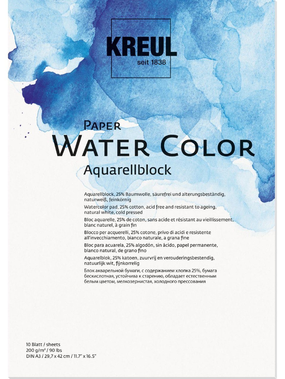 Die italienischen Künstlerpapiere aus dem Hause Kreul wurden passend zu den Farbsystemen ausgewählt. Vom Zeichenpapier für Skizzen bis hin zu den Papieren für die Malerei mit Aquarellfarben, mit Öl- und Acrylfarben und für die Anwendung von Mixed Media-Techniken entscheiden sich Künstler je nach Qualität für den passenden Bildträger: Die Künstlerpapiere Kreul Paper empfehlen sich hervorragend für Einsteiger, sie sind FSC®-zertifiziert (FSC® Mix)und werden umweltfreundlich hergestellt. Kreul Paper Water Color eignet sich ideal für die Malerei mit Aquarell- und Gouachefarben. Das Aquarellpapier ist vierseitig geleimt, sodass nach dem Anfeuchten eine gute Flachlage gewährleistet ist und keine Wellen entstehen. Durch die innere und äußere Verleimung sowie die feinkörnige Oberfläche erhält das Papier eine sehr ausbalancierte Wasseraufnahmefähigkeit. Das Papier besteht aus einer Mischung aus Baumwolle (25%) und ligninfreier Zellulose. Dieses qualitativ hochwertige Papier empfiehlt sich speziell für Studenten und Einsteiger.