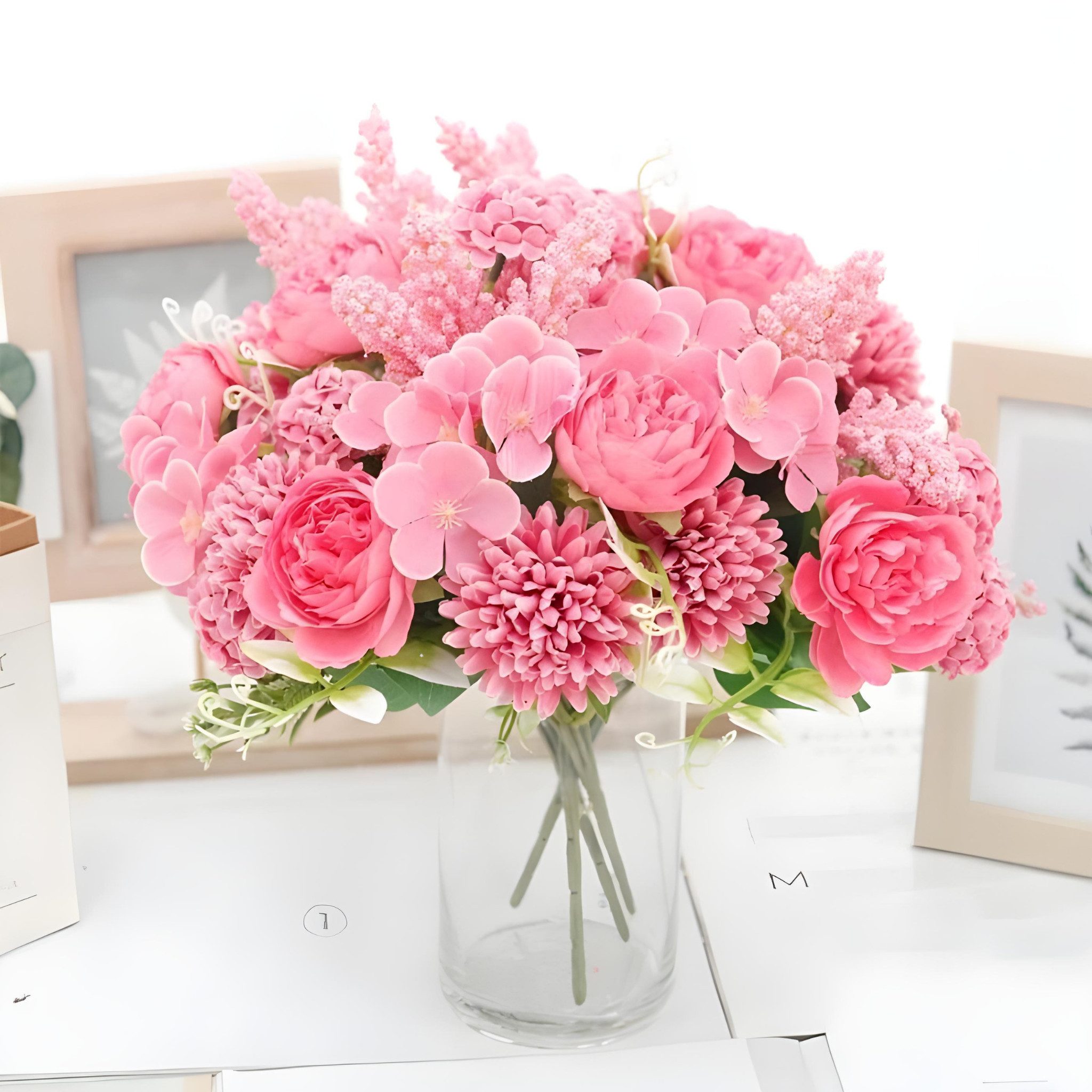 Dieser detailgetreue Kunstblumenstrauß ist die perfekte Wahl für stilvolle Dekorationen – ganz ohne Pflegeaufwand. Mit einem Durchmesser von ca. 6 cm pro Blüte und einer Gesamtlänge von ca. 30 cm passt das hochwertige Kunstblumen-Bouquet ideal in Vasen, Tischgestecke oder als kreative Hochzeits- und Raumdekoration. Wählen Sie aus verschiedenen Farben und gestalten Sie Ihr Zuhause oder Event ganz individuell.