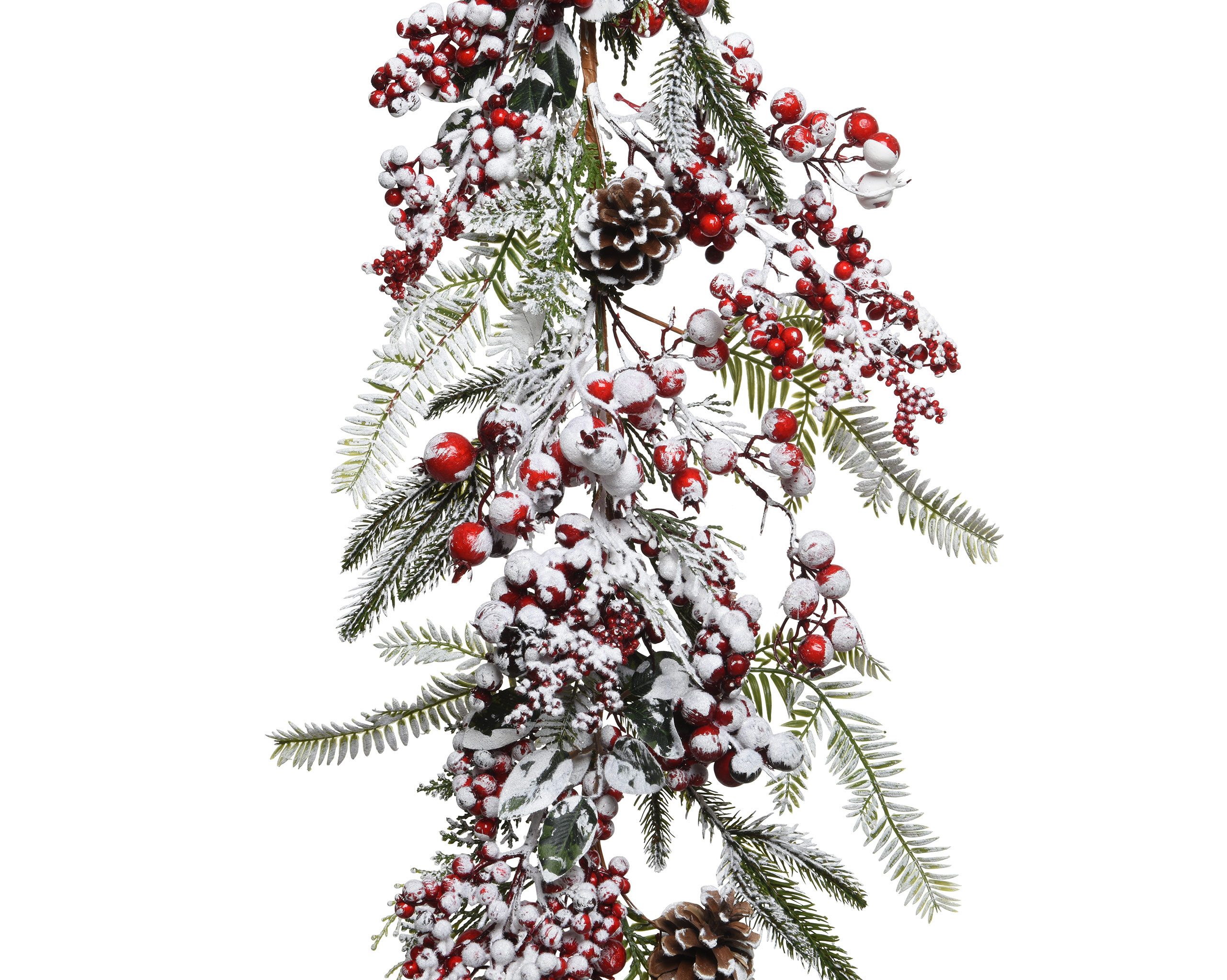 PRODUKT: Künstliche Beerengirlande / DURCHMESSER: ca. 20 cm / LÄNGE: ca. 180 cm / MATERIAL: Kunststoff - Plastik / Inhalt: 1 künstliche Girlande / Farbe: grün - rot - braun