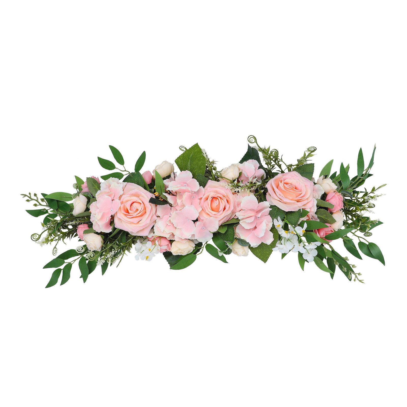 - Die Blumengirlande ist kompakter in der Form und funktioniert daher gut über einem Eingangsbereich, einem Fenster, einem Bogen oder jedem Bereich, der eine kleinere Dekoration für Zuhause benötigt.