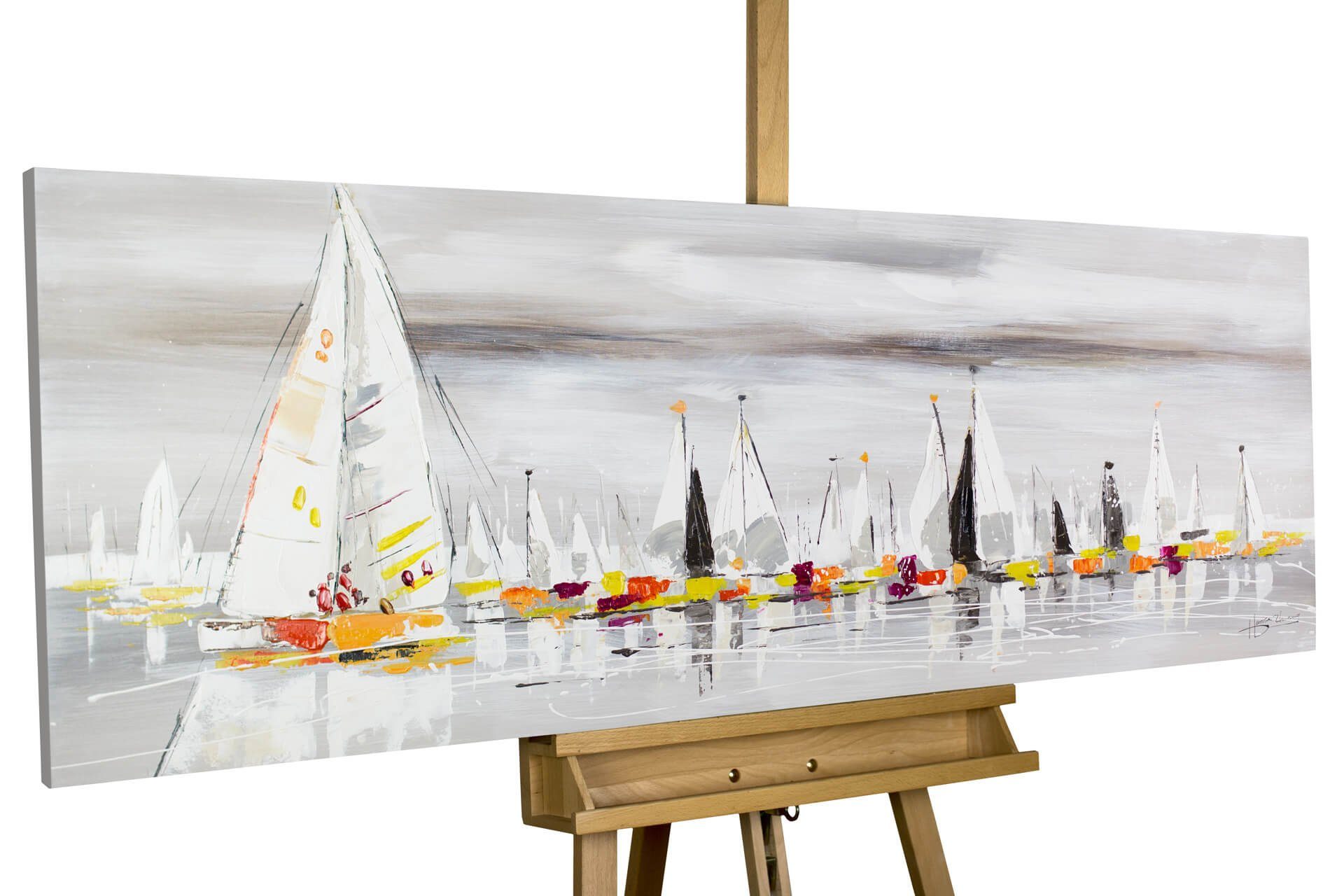 'Durch die sieben Meere' rauschen die Segelschiffe mit ihren bunten Rümpfen auf dem handgemalten Acrylgemälde. Auch wenn graue Farben die Szenerie prägen, sprüht die Fahrt über den Ozean nur so vor Lebensfreude. Begleiten Sie das bunte Treiben und hängen Sie sich das Gemälde in die Küche oder Ihr Büro! Besucher werden täglich begeistert sein.