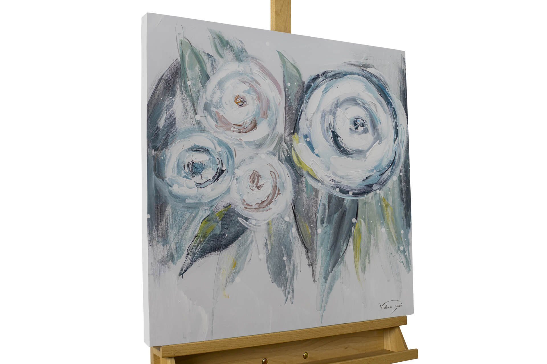 Wer Rosen verschenkt, drückt floral seine Gefühle für die andere Person aus. In 'Erinnerungen an Dich' betrachtet man das Acrylbild und denkt an den liebsten Menschen in seinem Leben, der selbst an Regentagen die Sonne im Herzen aufgehen lässt. Die handgemalte Gefühlsbekundung ist für Ihr Schlafzimmer im Shabby-Chic-Stil in Blau und Rosa koloriert.