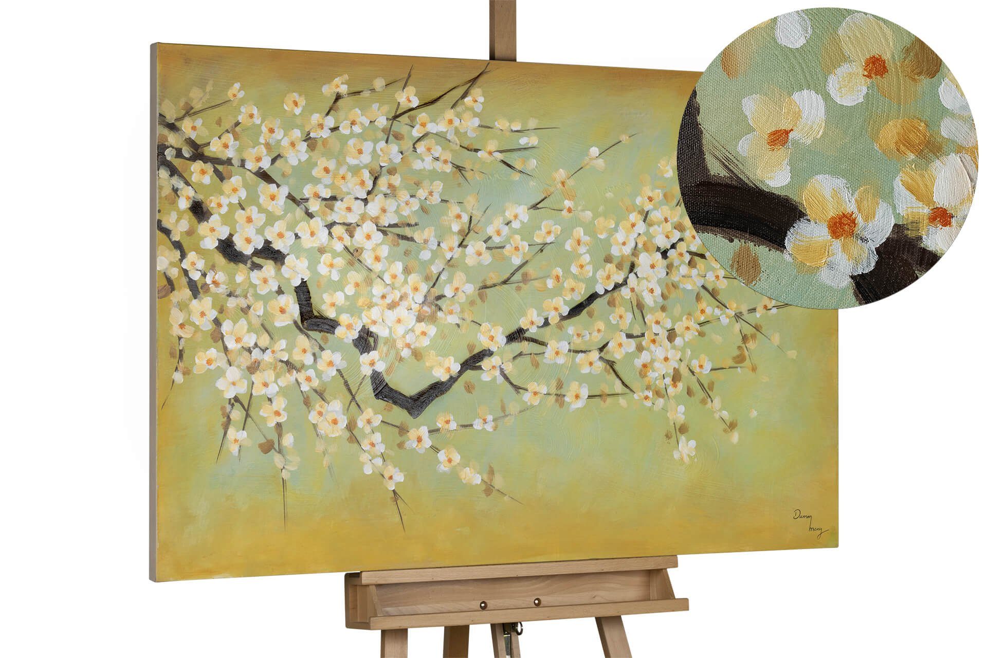 Jugendliche Unschuld und zarte Eleganz versprüht das Acrylbild 'Kirschblüten' in Grün. Egal, ob Kinderzimmer, Wohnzimmer oder Büro - goldener Glanz im Vintage-Look beweist feinfühliges Geschick in allen Lebenslagen. Erfreuen Sie sich jeden Tag aufs Neue an diesem Prachtwerk und eröffnen Sie auch Ihren Besuchern den Zugang zur Kunst.