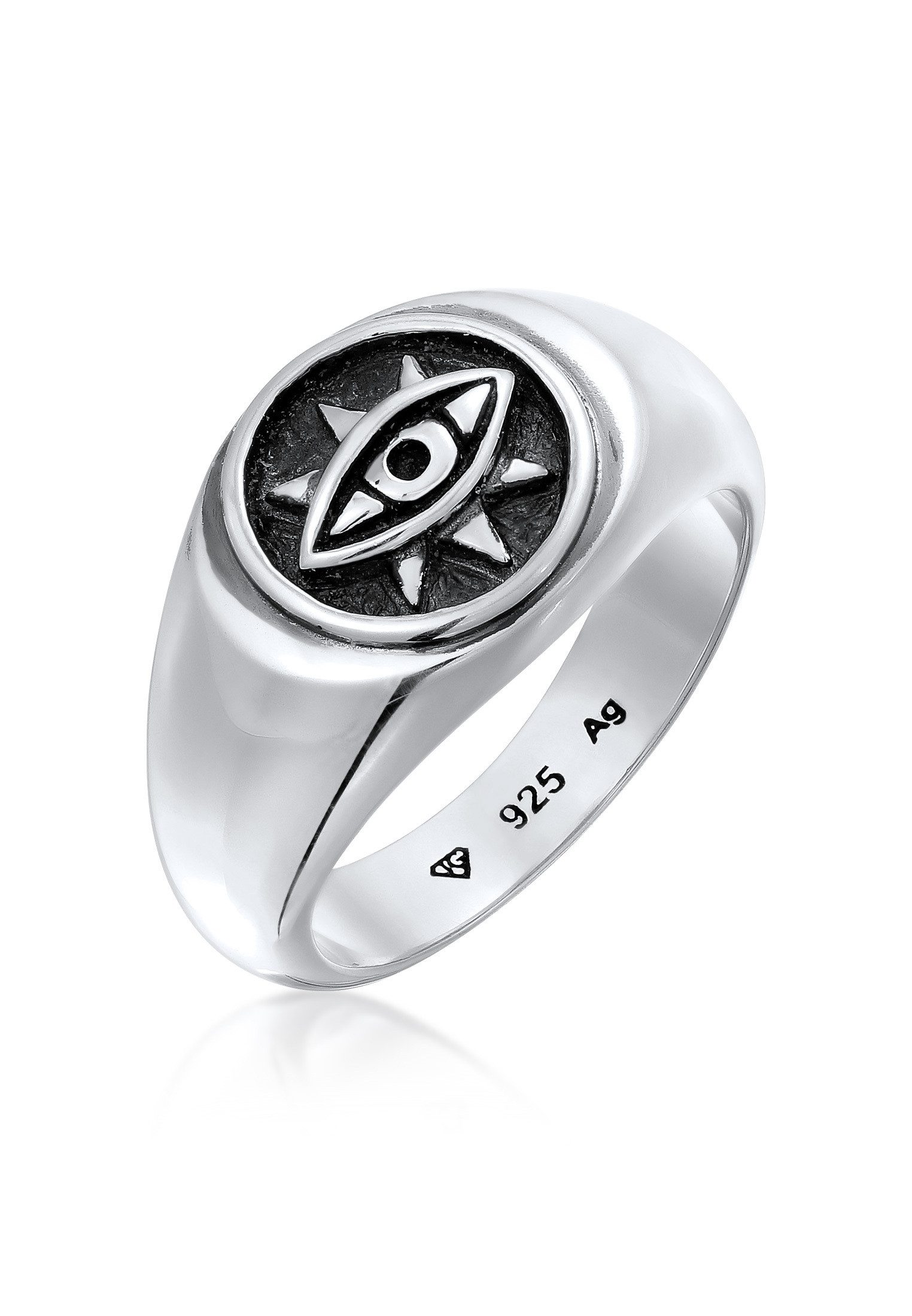 Eleganter Ring für Herren aus 925 Sterling Silber mit markantem Böses Auge Symbol in Silber