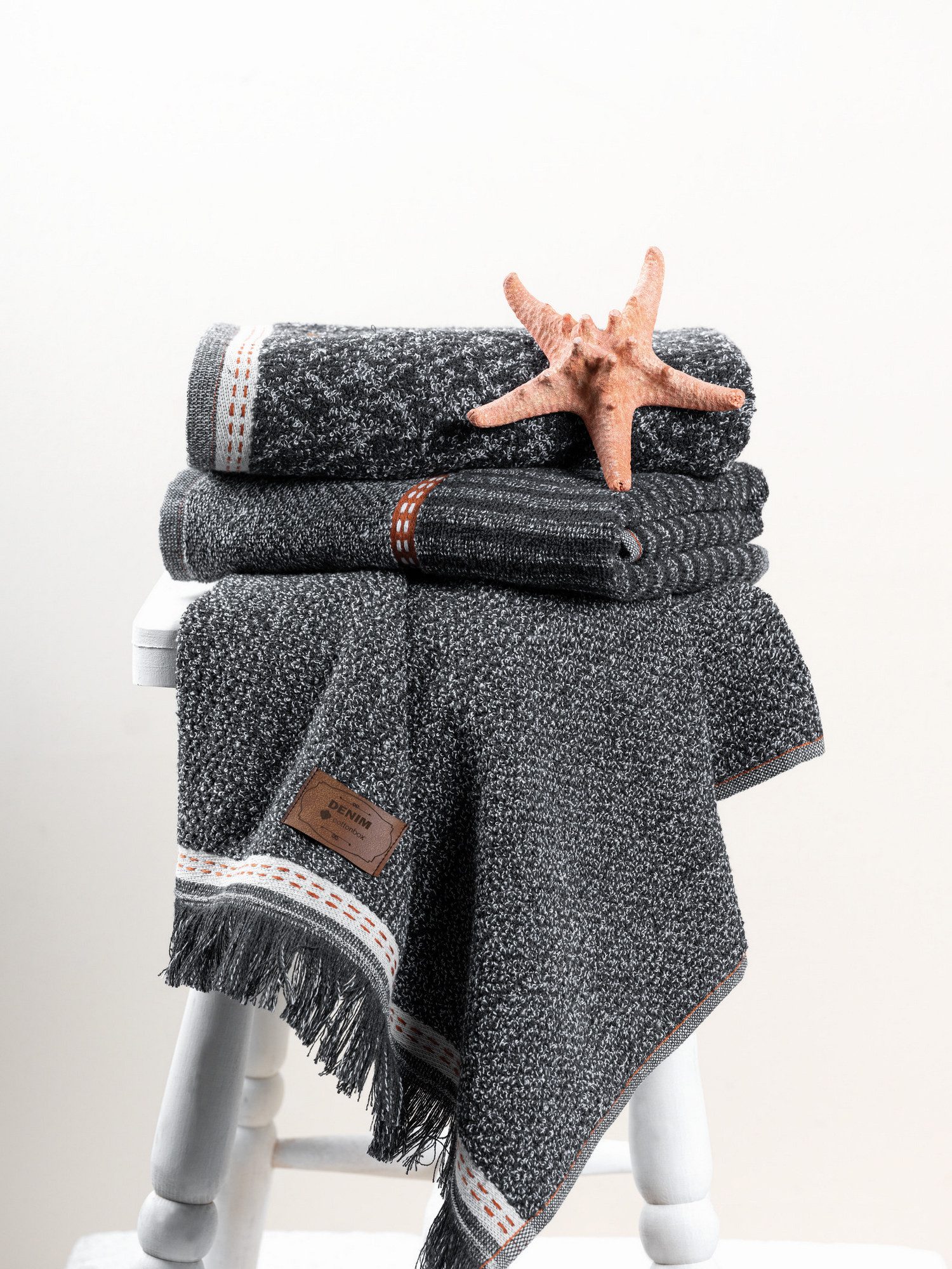 Die Farbe Anthrazit unseres Handtuch-Sets verleiht jedem Badezimmer einen Hauch von Eleganz. Sein schlankes und modernes Design ergänzt mühelos jeden Einrichtungsstil und schafft eine harmonische und einladende Atmosphäre. Verwandeln Sie Ihr Badezimmer in einen Ort der Entspannung und des Stils mit unserem eleganten Handtuch-Set.
