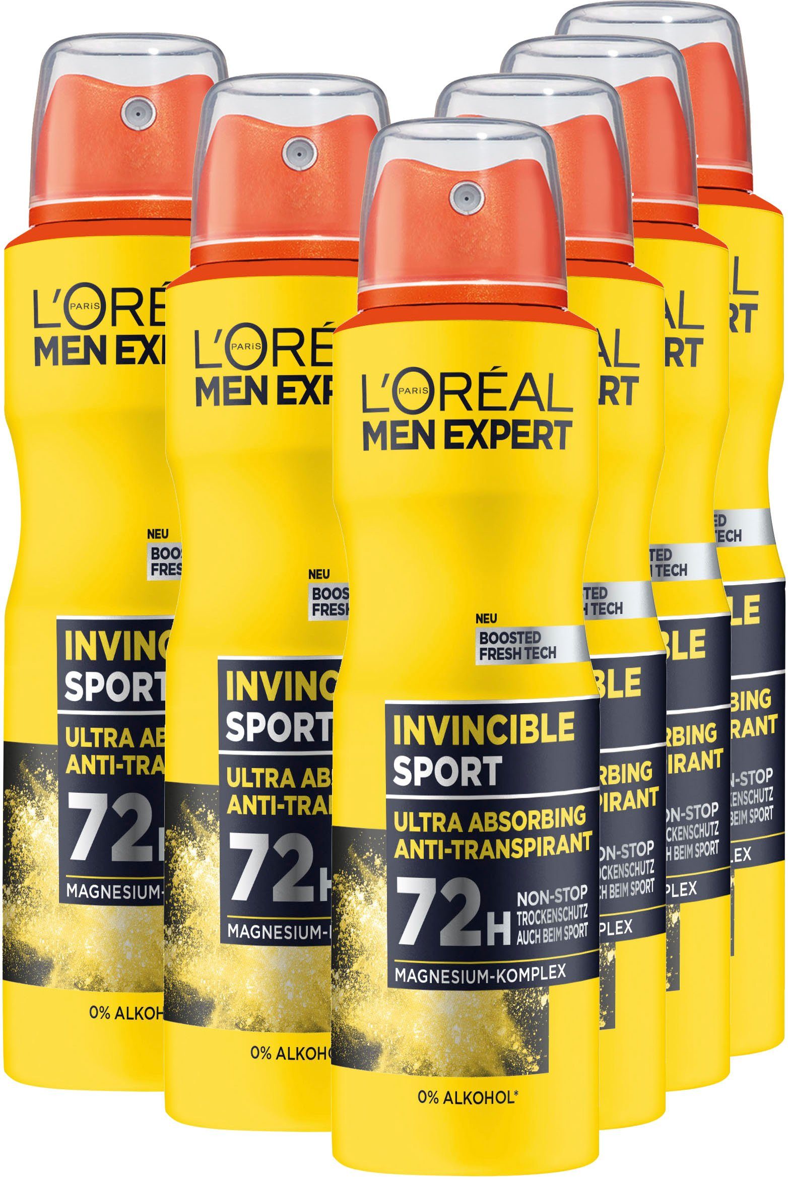 Anwendung | Um die volle Wirkung des L'Oréal Paris Men Expert Deo Sprays Invincible Sport zu entfalten, sollte der Körper vor der Anwendung gereinigt werden. Vor dem Gebrauch muss die Spray-Flasche gut geschüttelt werden. Der ideale Abstand zwischen Körper und Spray beträgt bei der Anwendung ca. 15 Zentimeter. Im Fall einer Verstopfung des Sprühkopfs kann dieser mit warmem Wasser gereinigt werden. Das Deo Spray verspricht einen Transpirationsschutz von 72 Stunden, kann Deo bei sehr intensiver Schweißbildung jedoch auch mehrmals täglich angewendet werden. |