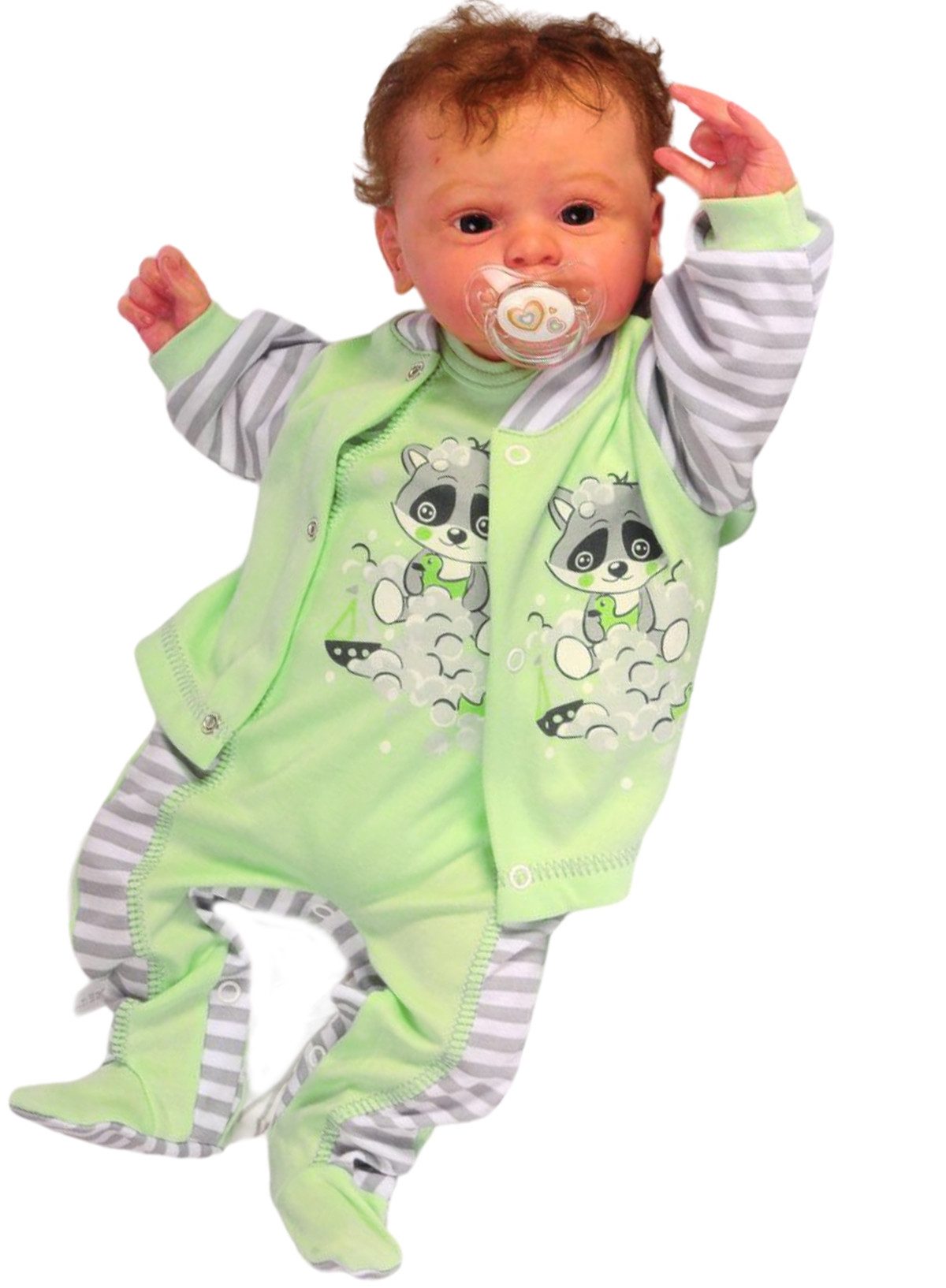 Dieses zweiteilige Baby-Set besteht aus einem gemütlichen Strampler und einem passenden Hemdchen – beide aus 100% reiner Baumwolle gefertigt und dadurch besonders weich, atmungsaktiv und hautfreundlich. In frischem Apfelgrün mit seitlich grau gestreiften Details und einem liebevollen Waschbär-Aufdruck kombiniert das Set Komfort mit einem kindgerechten Design. Der Strampler verfügt über praktische Druckknöpfe im Schritt und im Schulterbereich, was das An- und Ausziehen sowie das Wickeln erleichtert. Auch das Hemdchen ist mit Druckknöpfen versehen und lässt sich einfach öffnen und schließen. Dank des neutralen Farbtons eignet sich dieses Set ideal für Baby Jungen und Mädchen – perfekt für alle Jahreszeiten und eine schöne Geschenkidee zur Geburt. Das niedliche Streifenmuster und der charmante Waschbär-Print verleihen dem Anzug eine fröhliche Note. Praktische Druckknöpfe erleichtern das An- und Ausziehen. Ideal für den täglichen Gebrauch und einfach zu pflegen, ist dieser Anzug perfekt für Ihr Baby. Dieser stilvolle und bequeme Anzug ist das ideale Geschenk oder eine wunderbare Ergänzung für die eigene Babygarderobe.
