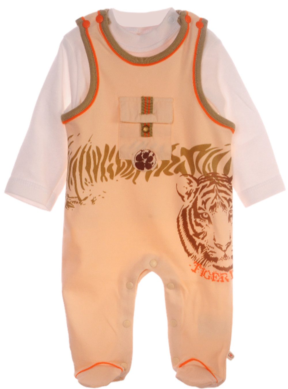 2-teiliges Set: Ärmeloser Strampler in Beige mit niedlichem Tiger-Aufdruck und langärmliges Shirt in Creme.